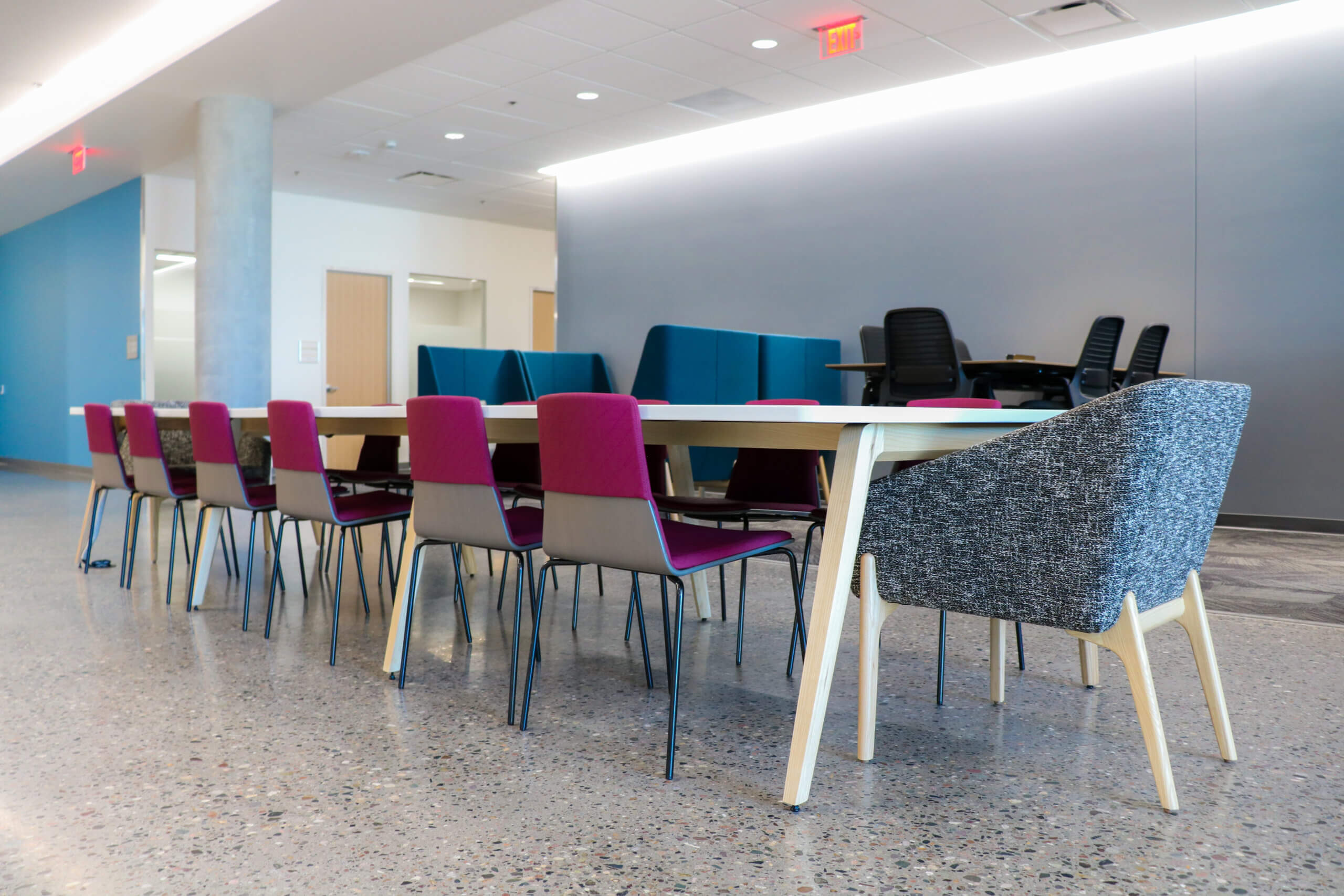 Atmosphere, ASU and DFDG worked diligently to create a state-of-the-art facility designed to maximize the amount of interdepartmental shared spaces to generate ongoing opportunities across the Mayo Clinic and ASU Alliance for Health Care. The space features open collaborative spaces with access to power and technology to help support biomedical research and innovation amongst the groups in the building. Each private office was designed with height adjustable desks and a meeting space to allow multiple postures and collaboration. In addition, meeting rooms and classrooms were equipped with moveable tables and chairs on casters to support on-demand flexibility.