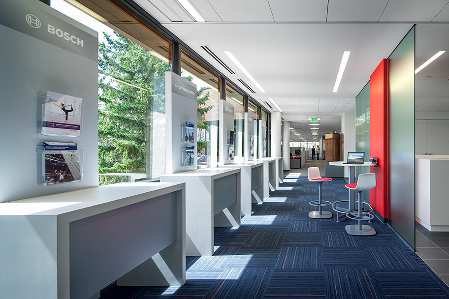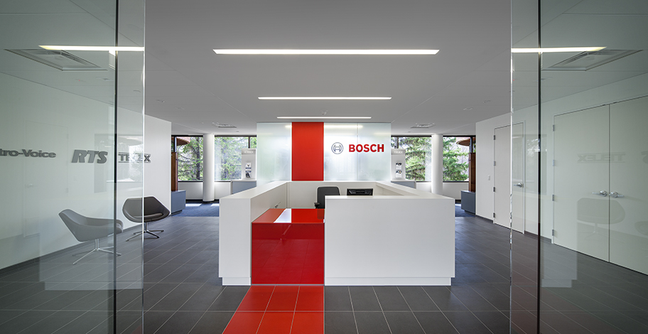 Working in a dark, outdated space, Bosch Security Systems wanted a complete transformation to meet their business and staffing needs. One challenge was to accommodate Bosch’s need to keep business running from their current space during construction. As a security firm, accommodating confidential documents and protecting their computer system from disruptions in the course of their work was paramount.