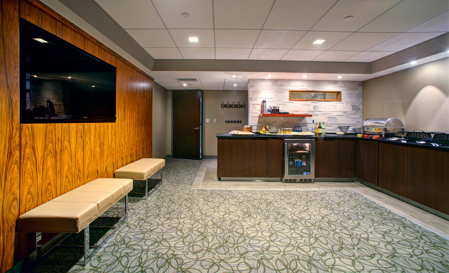 Owned and operated by Delaware North, the state-of-the-art TD Garden is home to the Boston Bruins and Boston Celtics, as well as world-renowned concerts, sporting events, family shows, ice shows and more. As part of a comprehensive, arena-wide upgrade, Atmosphere Commercial Interiors was chosen to partner with the design firm and owner to select products for the right fit, purpose and budget in the renovation of all 90 executive suites.