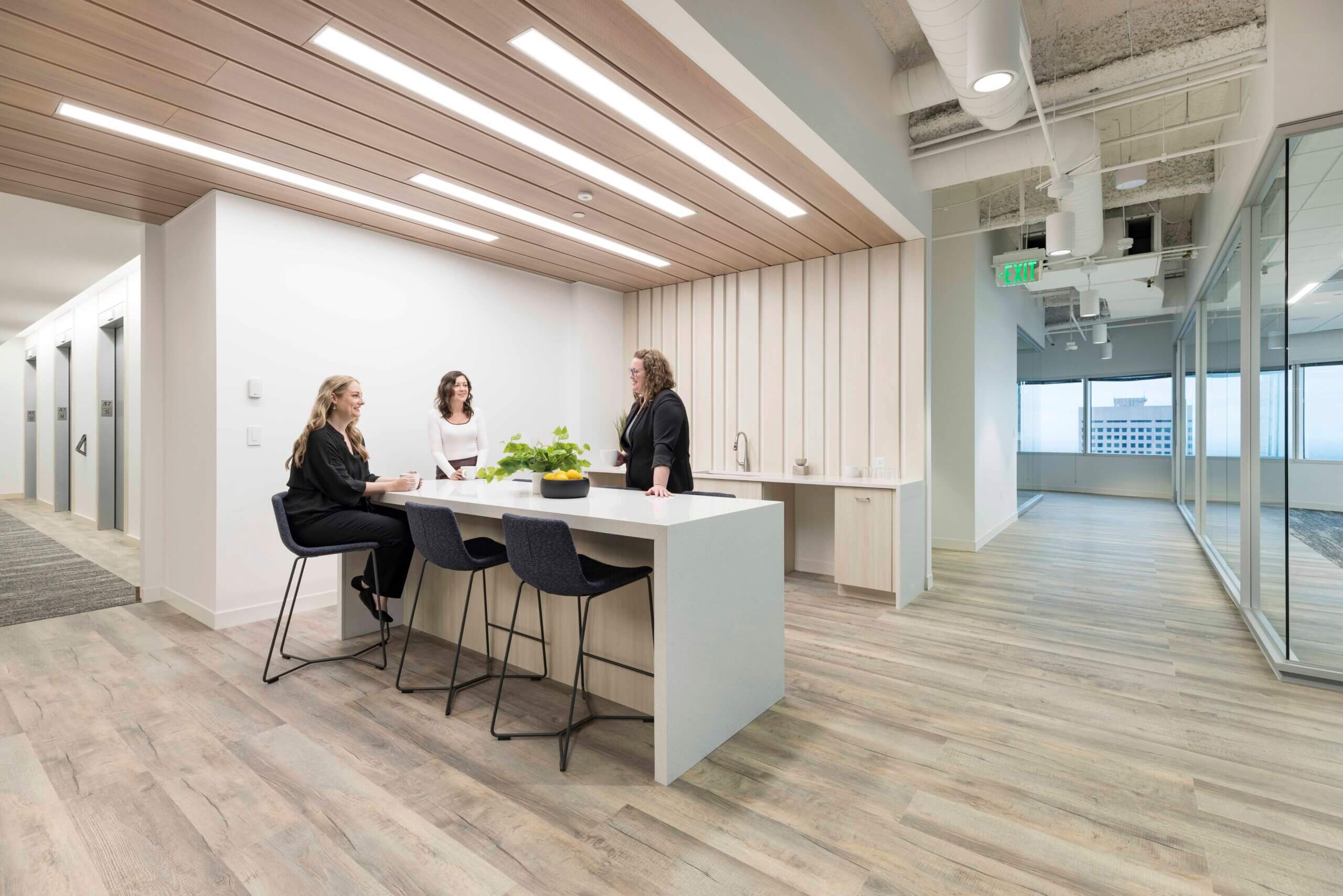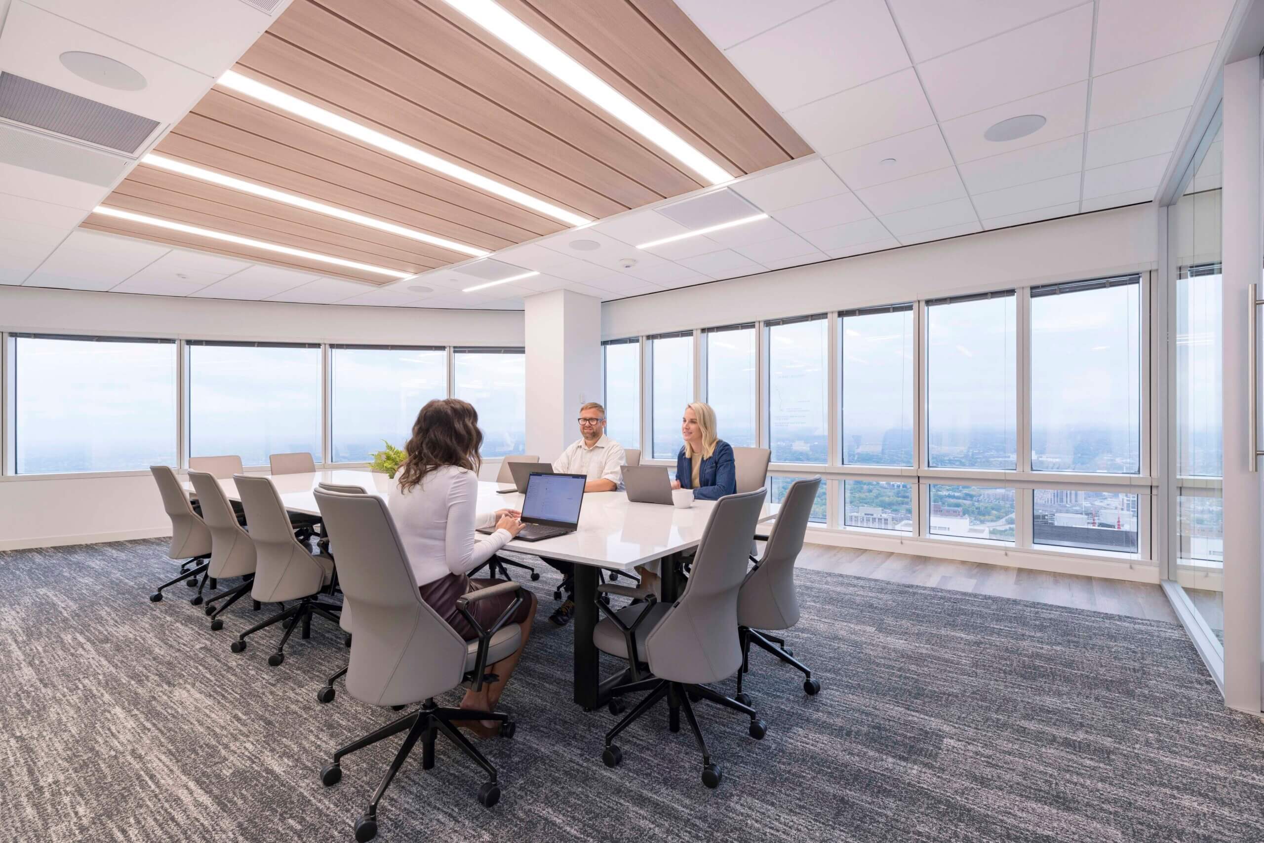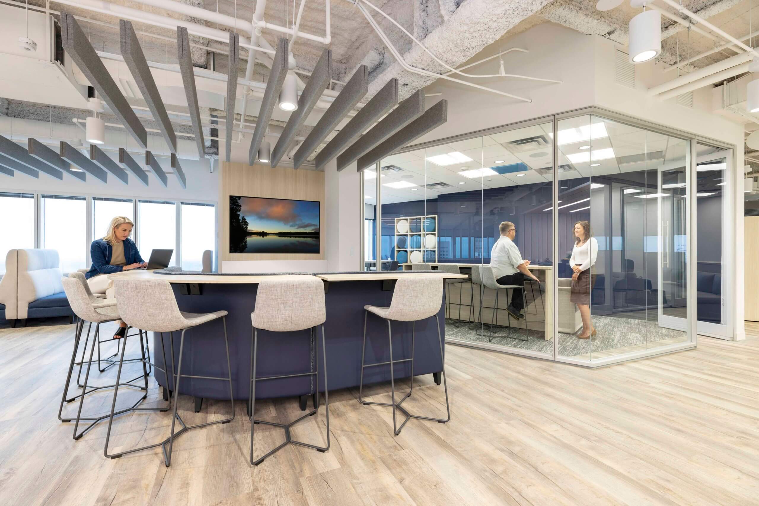 The furniture team at Atmosphere in Minneapolis implemented a variety of solutions, including individual workstations, private offices, various touchdown stations, and a curated selections of collaboration and customized conference spaces that showcase a unique blend of sophistication and materiality.