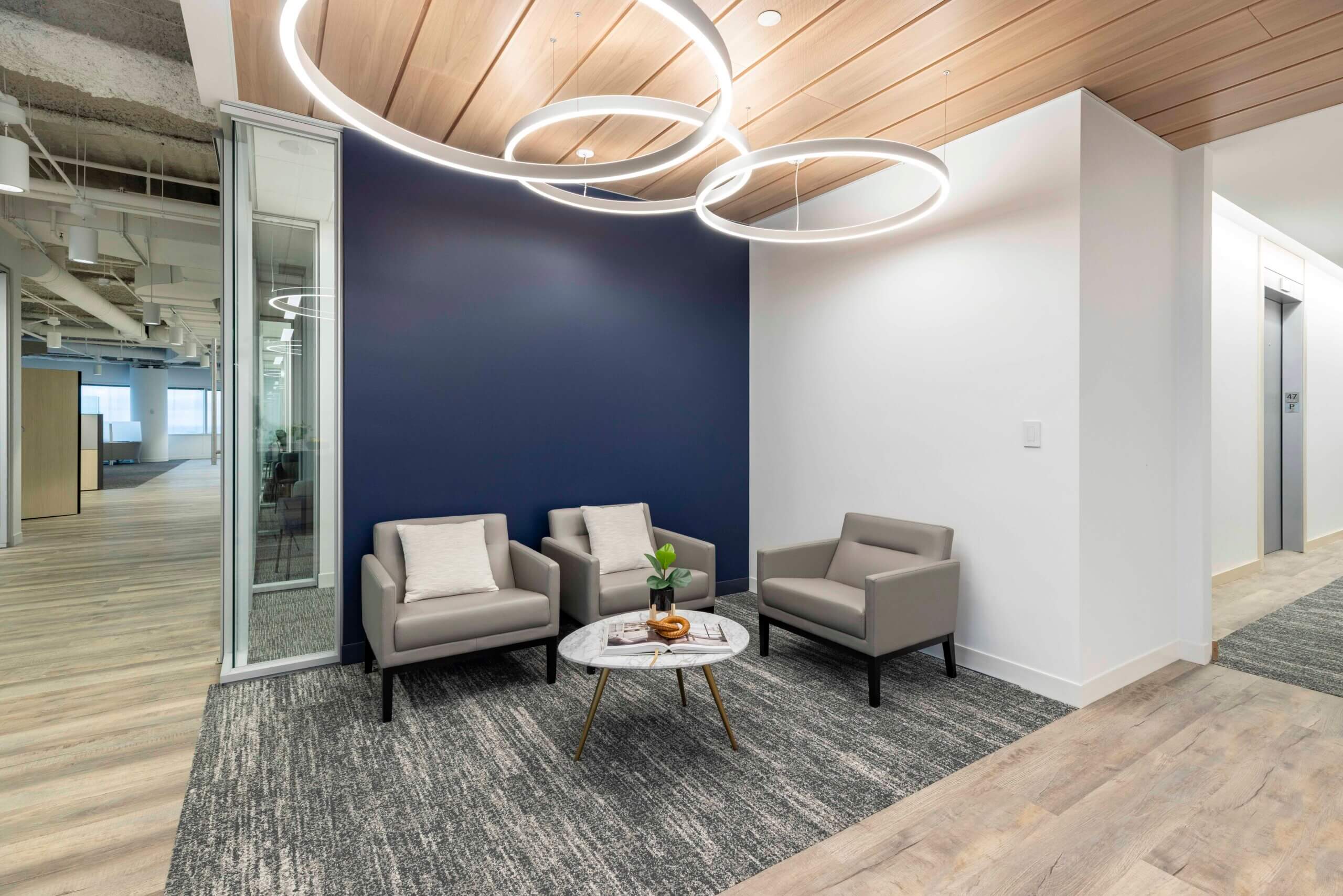 Bremer Bank, one of the largest banks in the Midwest, recently moved into their new space within the Capella Tower in downtown Minneapolis. As part of a company-wide refresh, Bremer was looking to create a unique space while maintaining visual consistency with their brand identity and furniture standards. Atmosphere partnered closely with key stakeholders to renovate the entire 47th floor of the Capella Tower. Covering 15,500 square feet, the space houses approximately 60 employees.