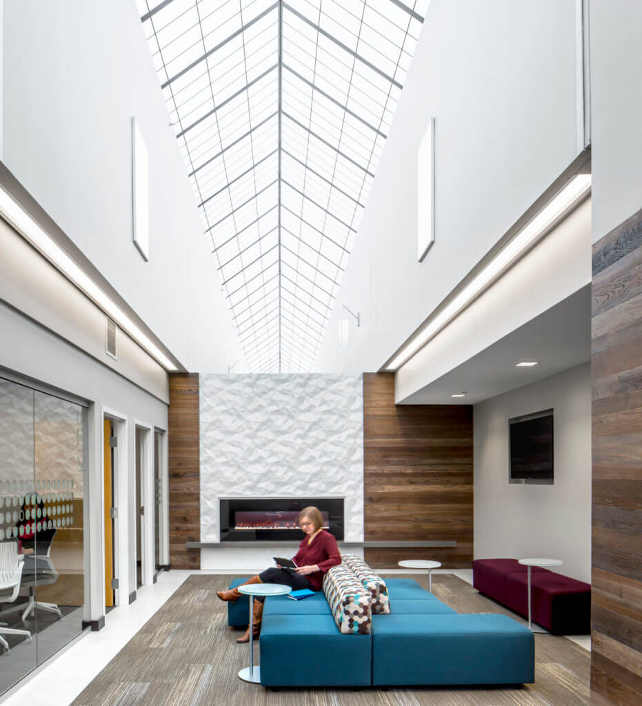 In Spring 2016, Children’s Minnesota Business Campus relocated 575 full time employees in administration and support roles from multiple locations to one consolidated site. Echoing the playful interiors of Children’s Hospitals and Clinics of Minnesota, the new office features nods to the colorful spaces featured throughout the healthcare system and shows their deep commitment to their core value of “kids first”.