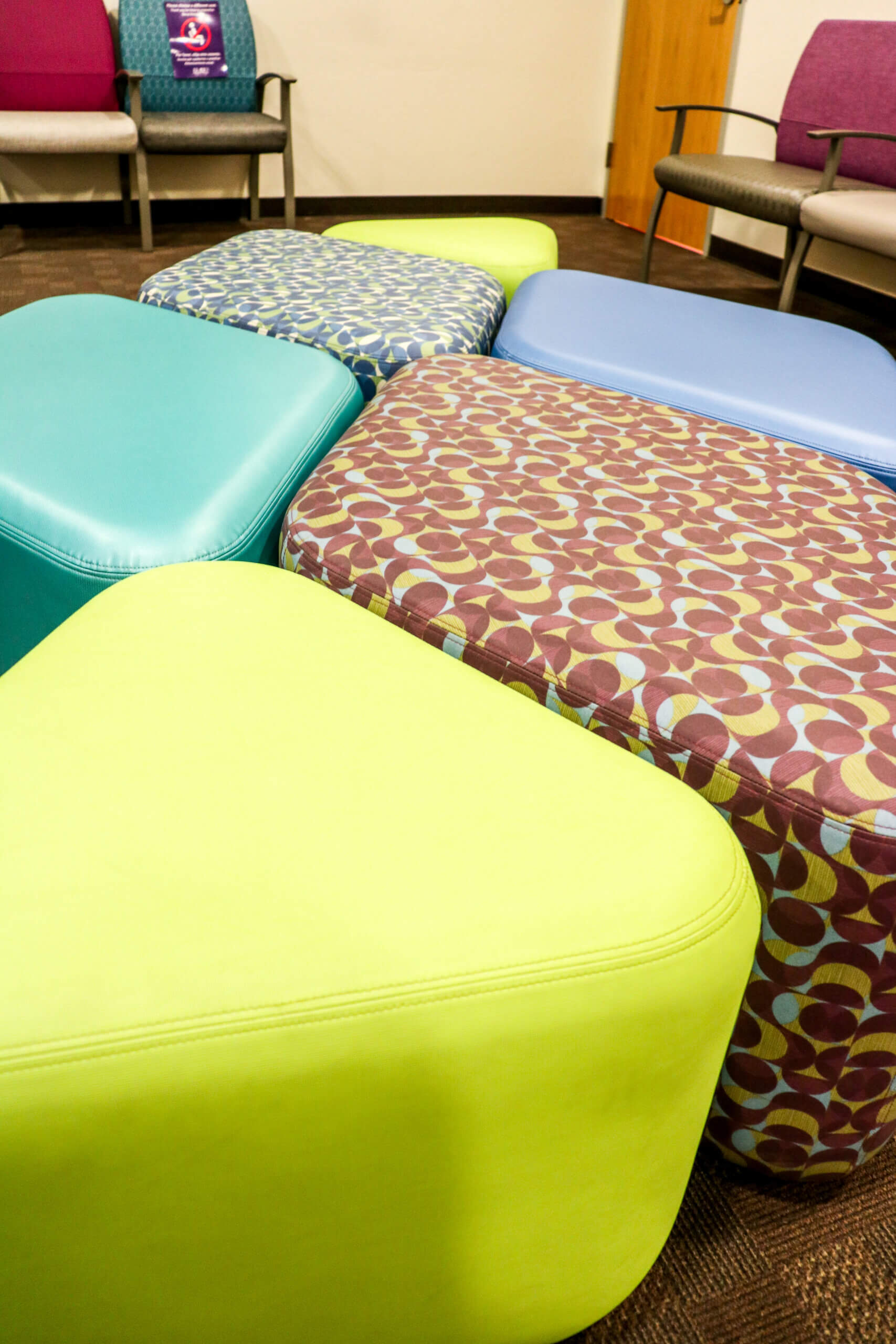 The goal of this project was to modernize the existing clinic so that patient-facing spaces were in-tune with the latest trends in healthcare. National Office Furniture Weli tandem seating, ERG International Raven modular seating, and the Ideon Nano modular lounge can be found throughout the various waiting spaces.
