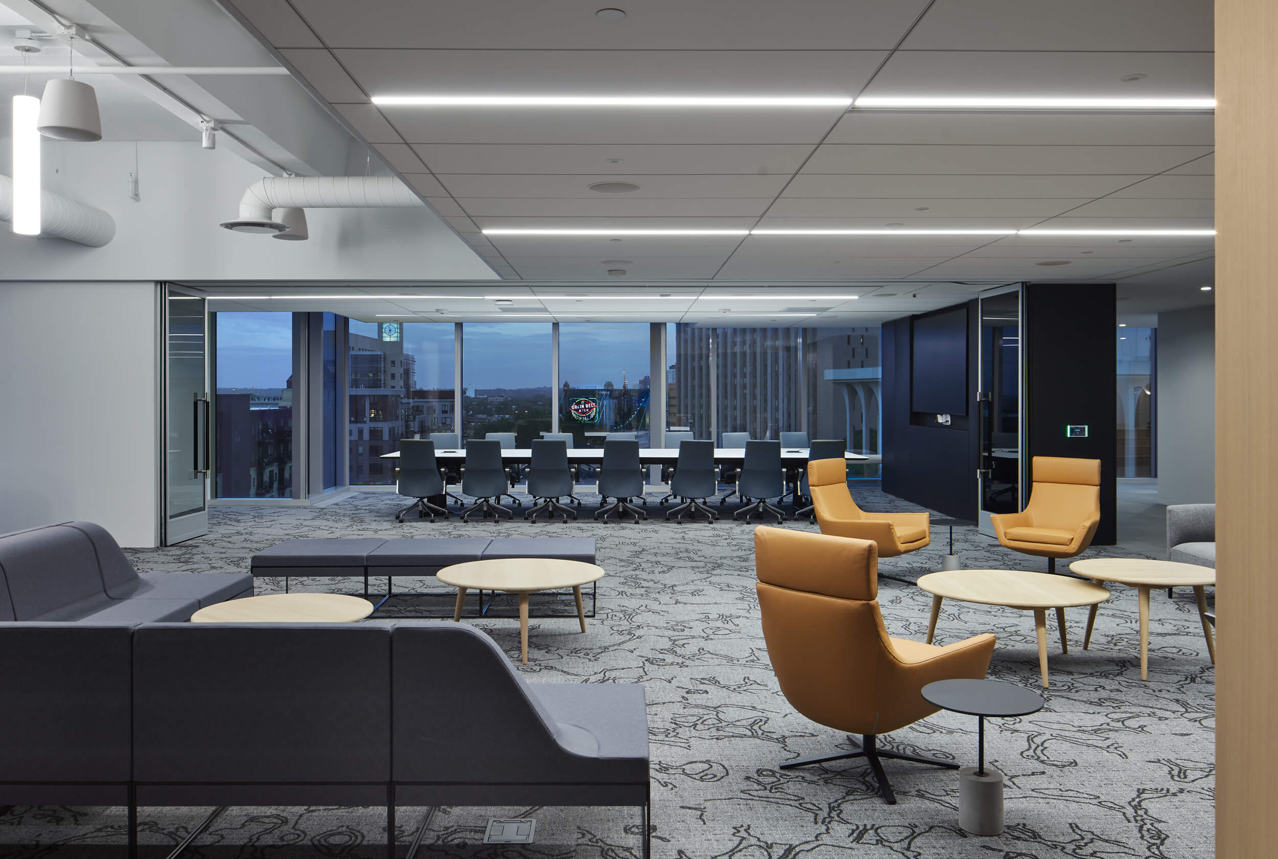 Atmosphere’s furnishings at the Gateway22 Workplace define work from a human-centric perspective. Spanning three floors of the RBC Gateway Tower in downtown Minneapolis, Gateway22 accommodates Pohlad Companies, United Properties, Carousel Motor Group, Pohlad Family Foundation, and Pohlad Investment Management.