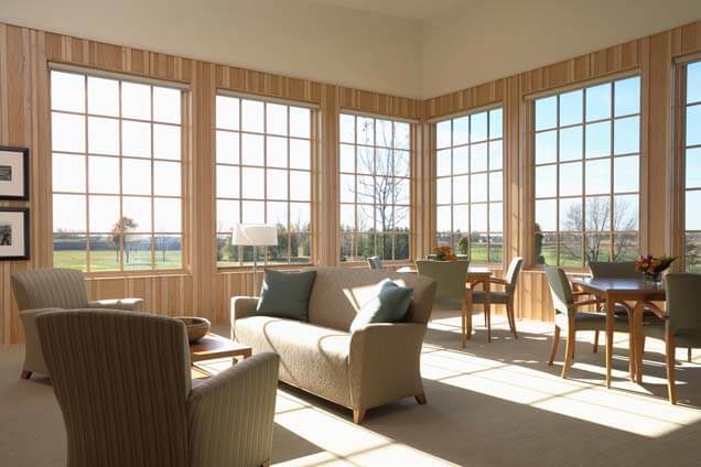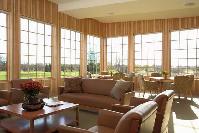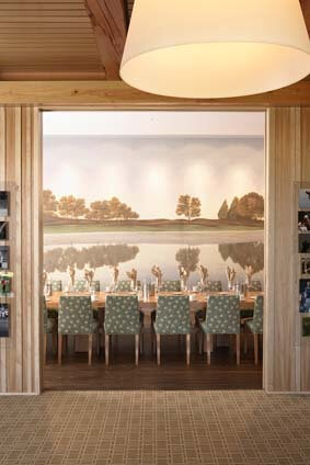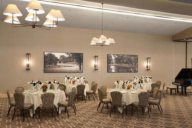 Hazeltine leveled its original clubhouse in October 2009 and replaced it with a new building that includes a member dining area steeped in the history of Hazeltine National and more than 50,000 square feet of meeting and event space.