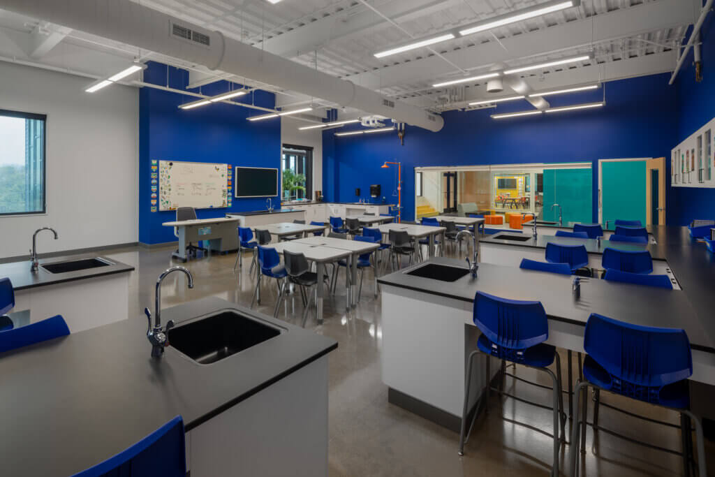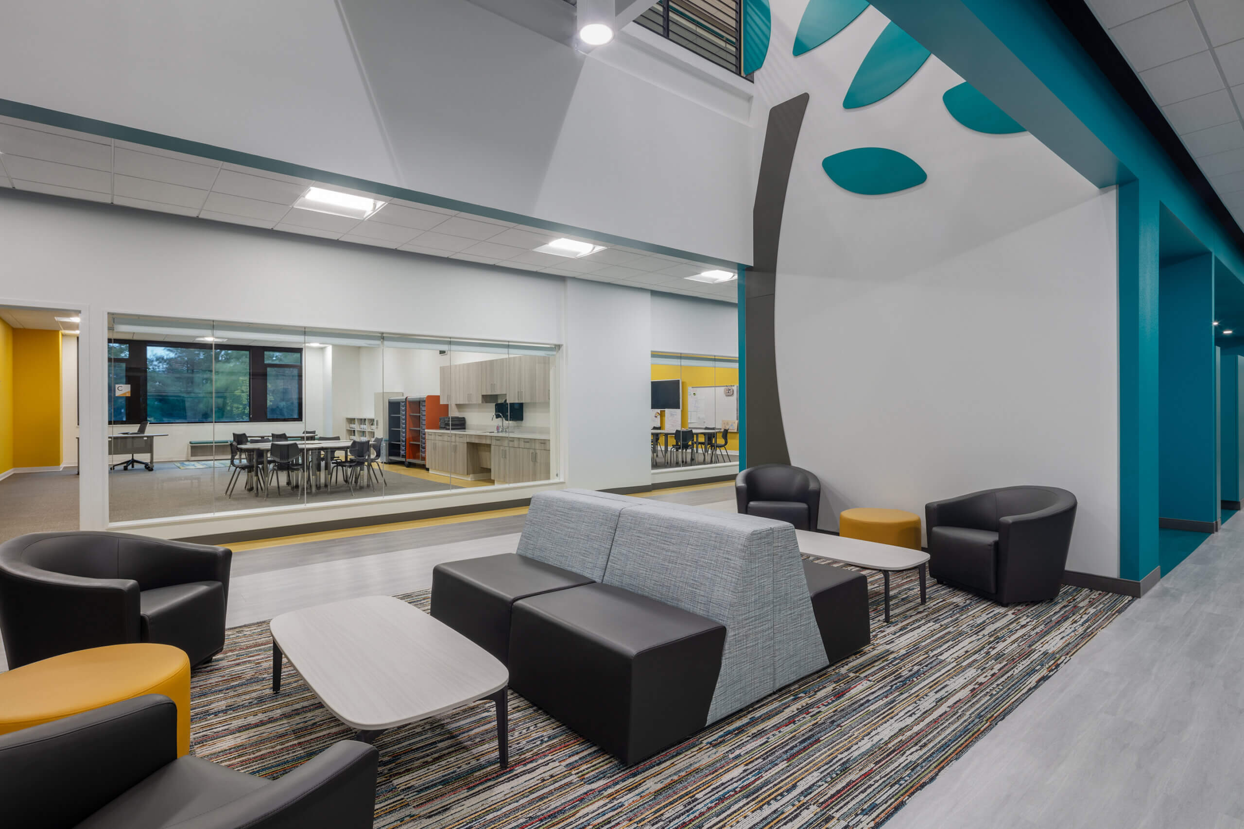 Our partnership was a great success! This beautiful new facility gives Hickory Hill Academy room to grow and offers students an innovative environment to engage in an interactive approach to learning. Atmosphere provided furniture solutions from Smith System, Steelcase, and Palmer Hamilton to support collaboration, productivity, and well-being among students and staff.