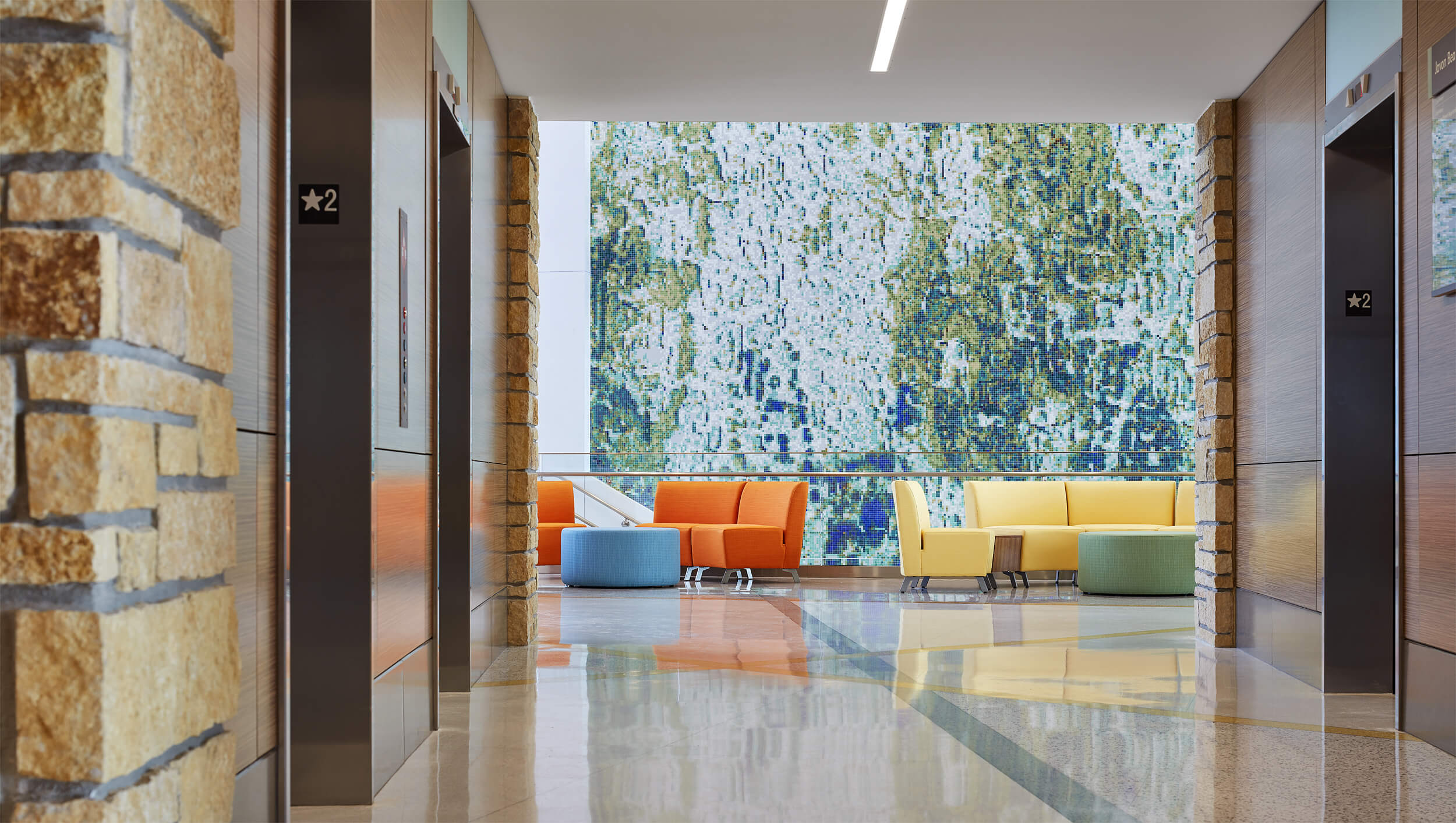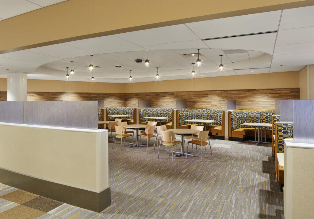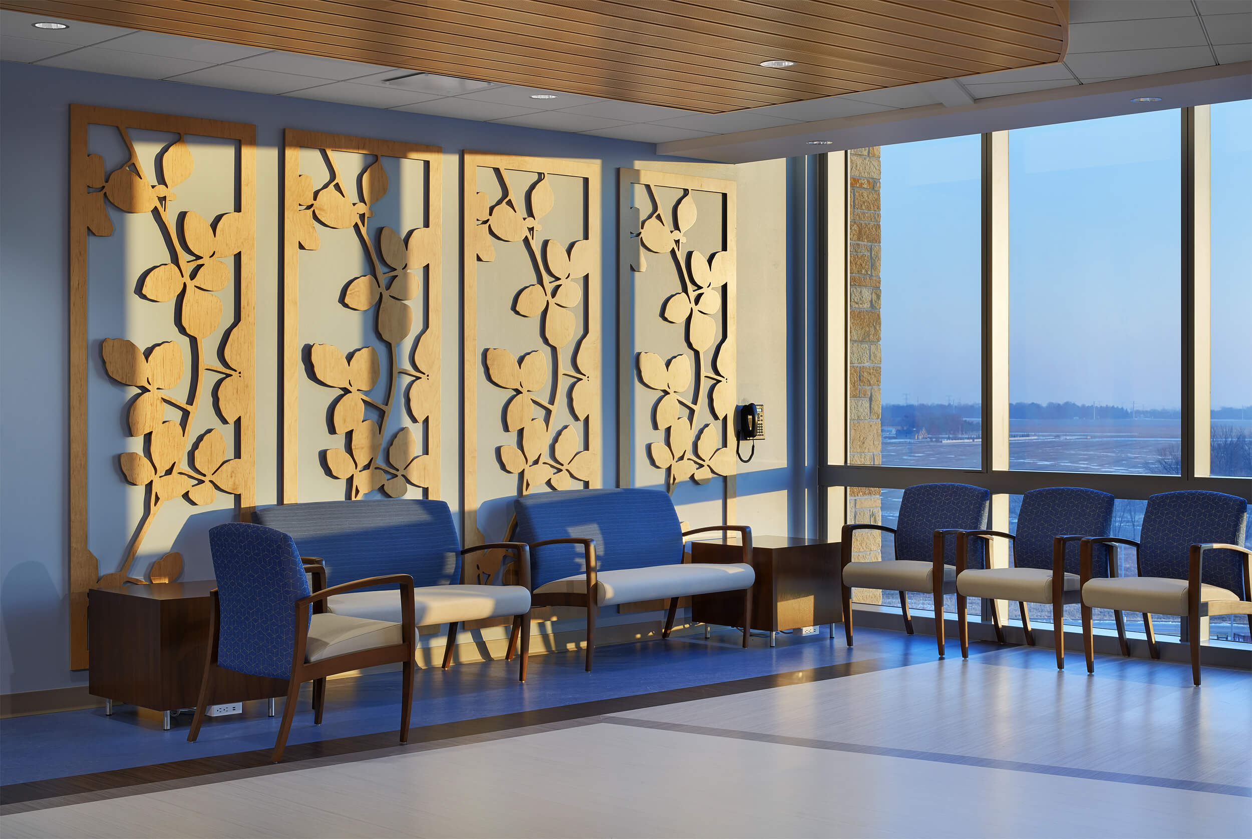 The furniture and finishes team at Atmosphere in Rockford, IL, partnered with Mercyhealth and AECOM to develop a budget for Javon Bea Hospital – Riverside and to specify furniture that contributes to comfortable, bright, and inviting environments. As a Level I Trauma Center and state-of-the-art hospital and clinic, the facility needed to incorporate the latest technology while also promoting peace and healing.