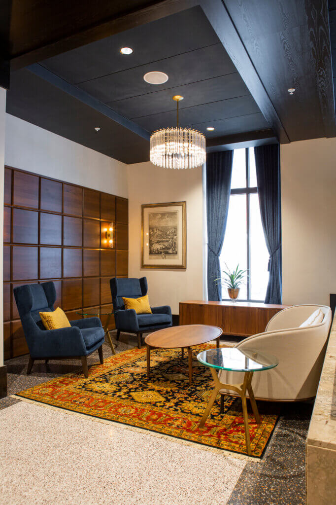 The Milwaukee Athletic Club is in the heart of downtown Milwaukee in a 12-story building that is listed on the National Register of Historic Places. Their recent two-year renovation encompassed all 210,000 square feet, and includes private apartments, hotel rooms, a new pool and athletic facilities, daycare, rooftop restaurant and terrace, ballrooms, coworking spaces, and lobby, among others.