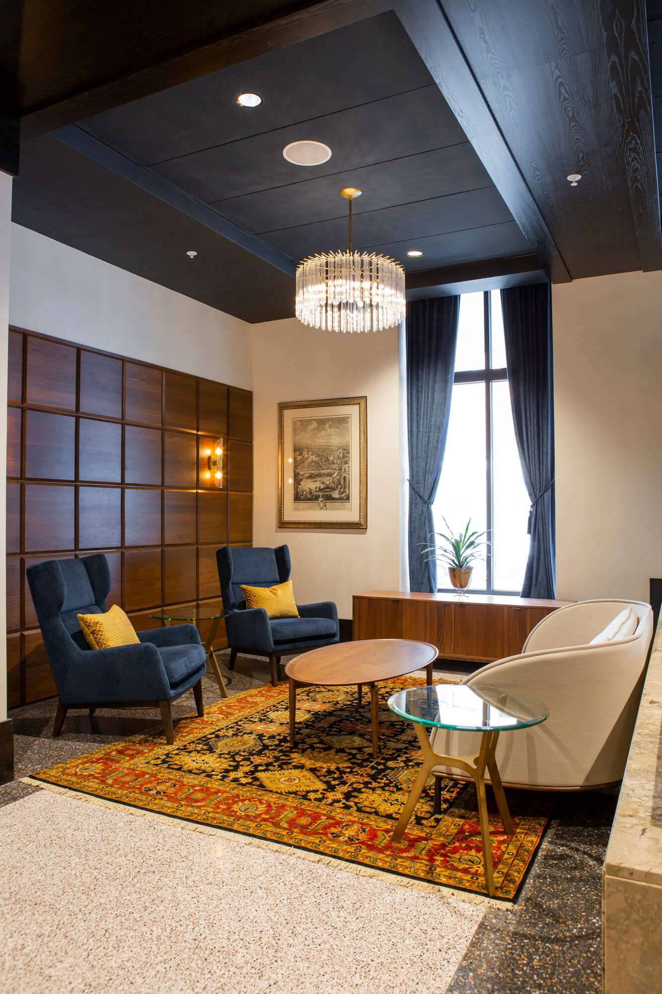 Atmosphere provided furniture for spaces throughout the MAC, utilizing over fifty different manufacturers to meet the wide variety of project needs and the upscale, historic aesthetic. Our team worked diligently to keep the installation running smoothly, coordinating with other trades as furniture was installed while construction was still underway.