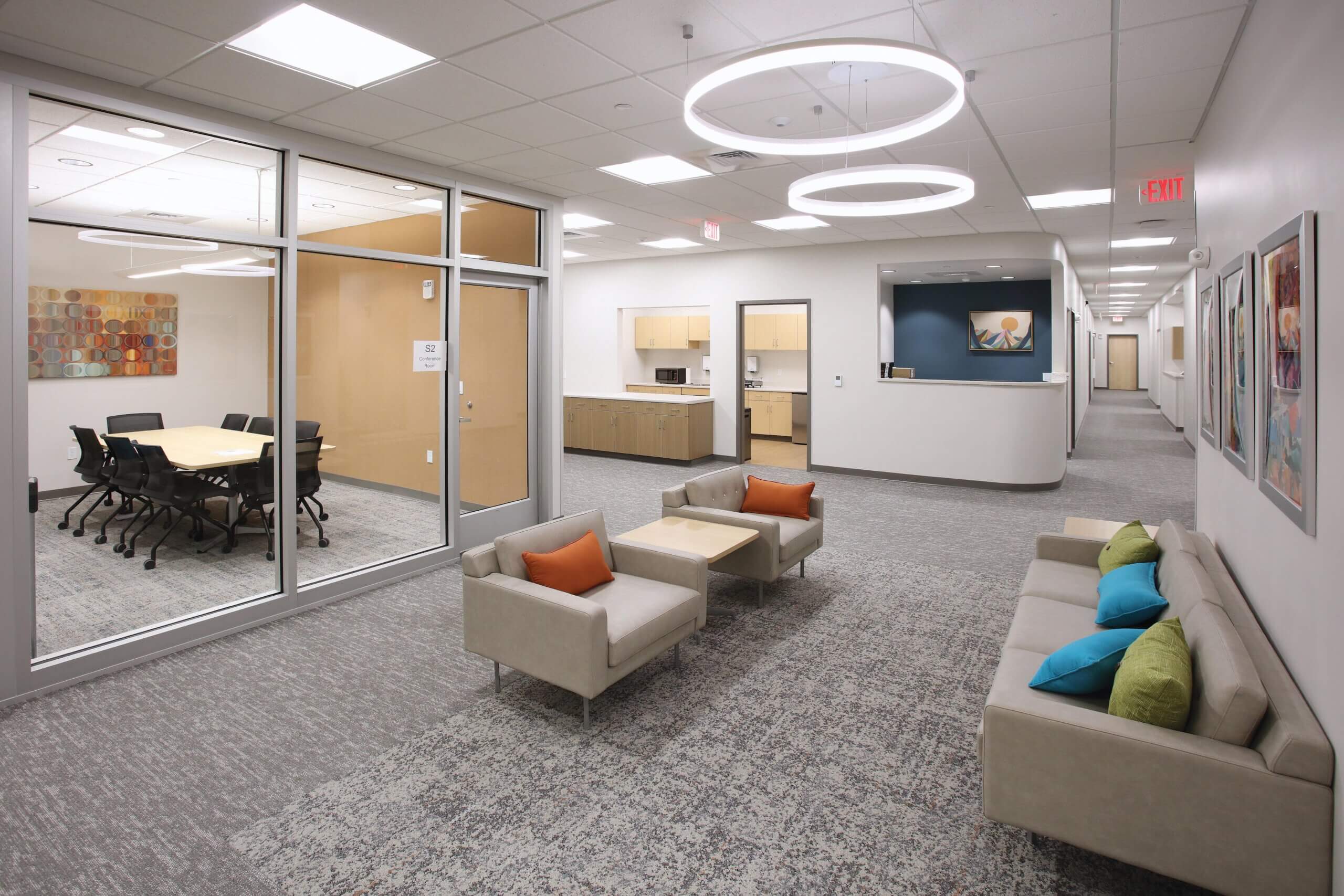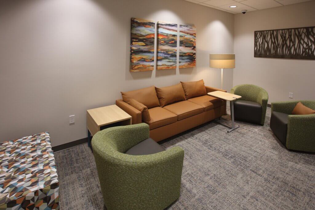 As a non-profit organization, Mosaic needed to stay within budget while also finding furniture that was durable and attractive. Atmosphere was able to integrate existing furniture with new products to furnish offices, waiting areas, therapy rooms, resident collaboration spaces, break room, and training areas. Mosaic Executive Director Lee Vogel says Atmosphere was skillful in guiding their team through the process:
