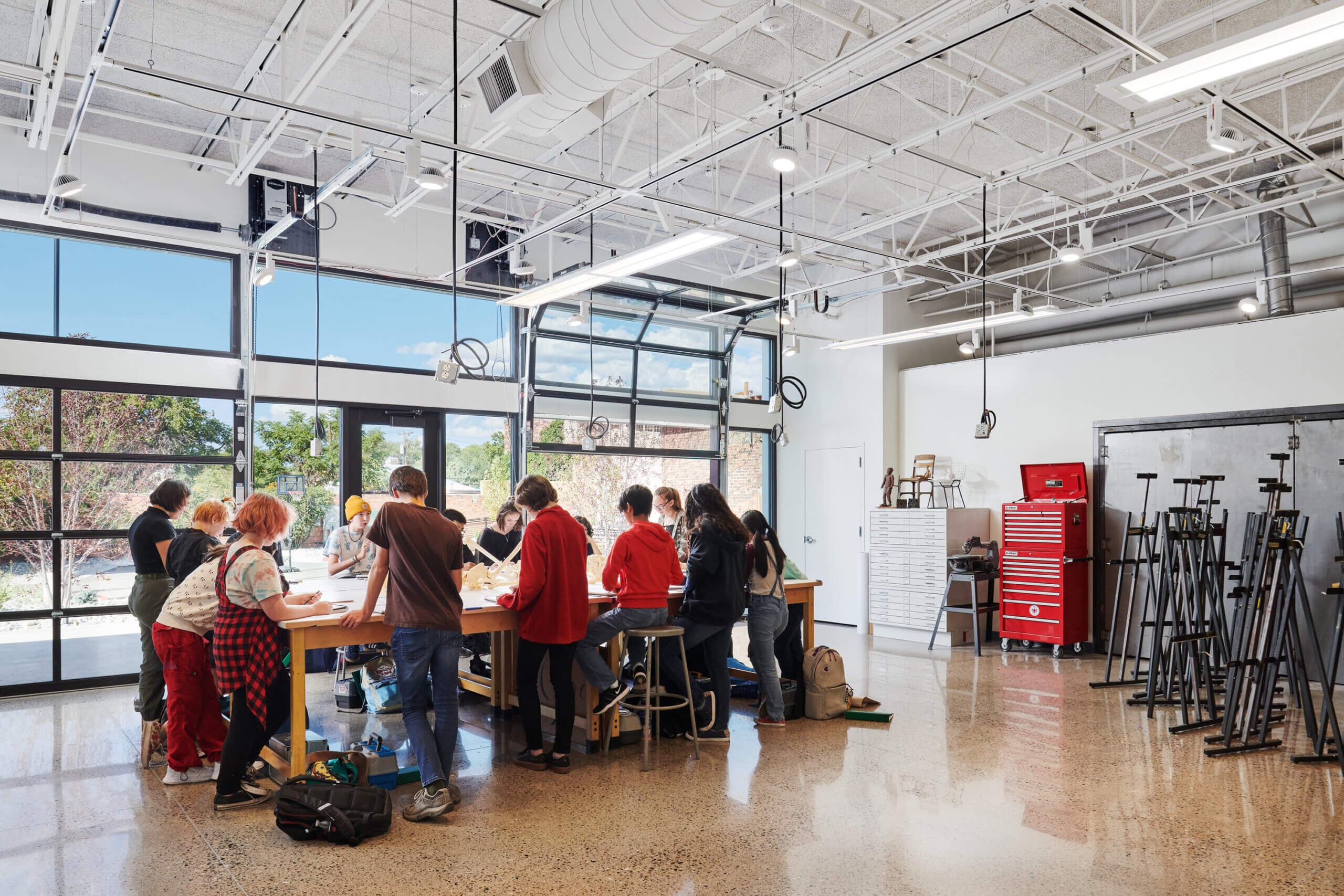Collaboration and creativity were key concepts when Atmosphere provided the furniture for New Mexico School for the Arts. We worked with both Studio Southwest Architects and school faculty to provide the furniture for this new school with the artistic passion and academia of the students as the center of design process. The furniture allows for mobility with nomadic spaces for student gathering. We installed three buildings that included classrooms, an administration area, in-between and collaboration spaces, a media center and cafeteria.