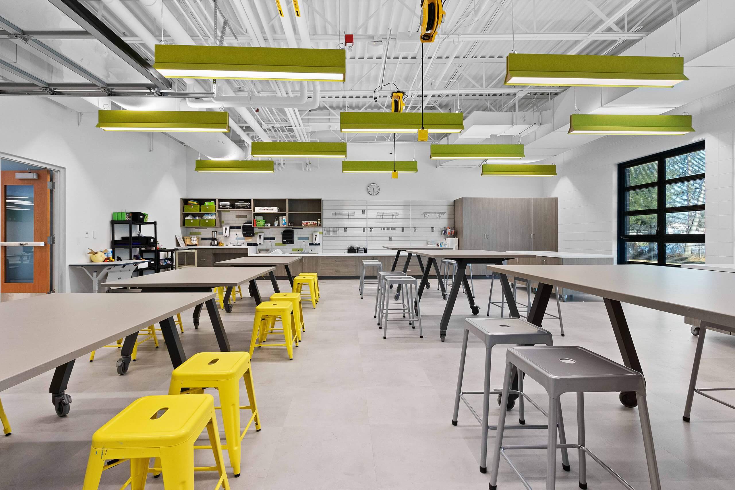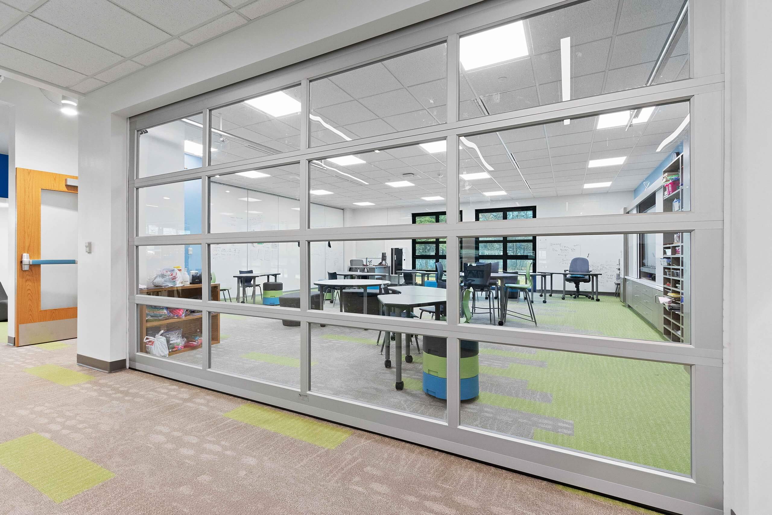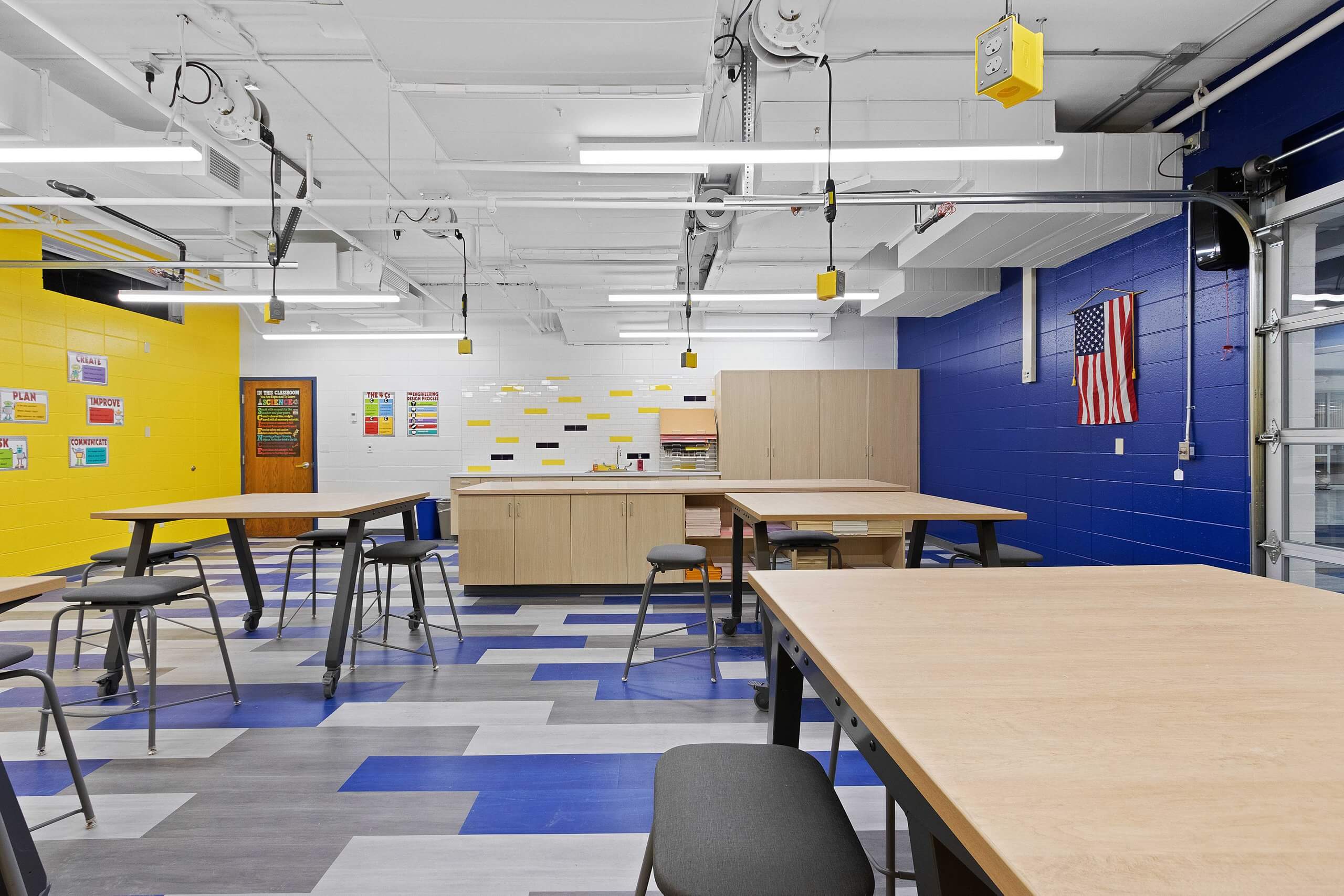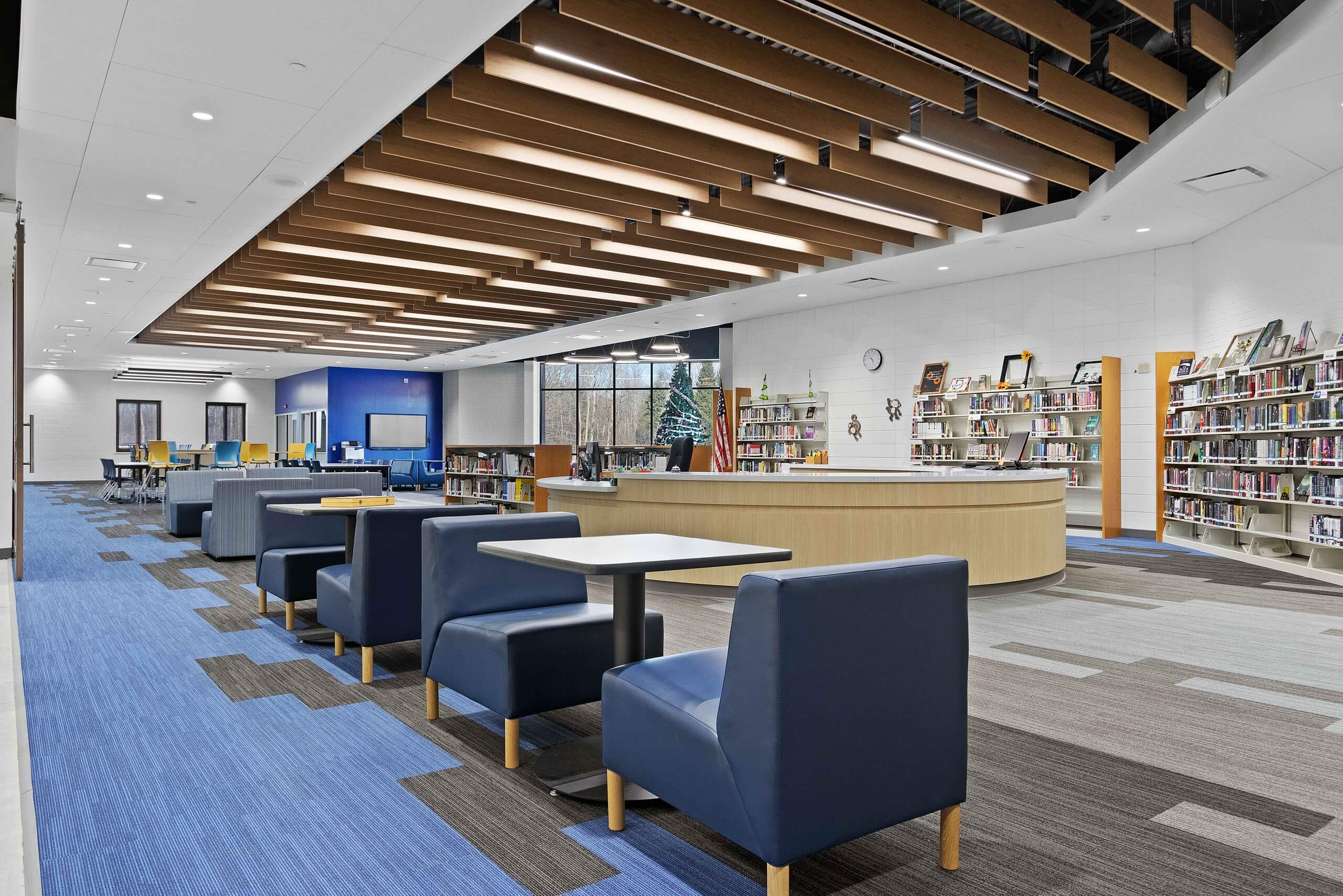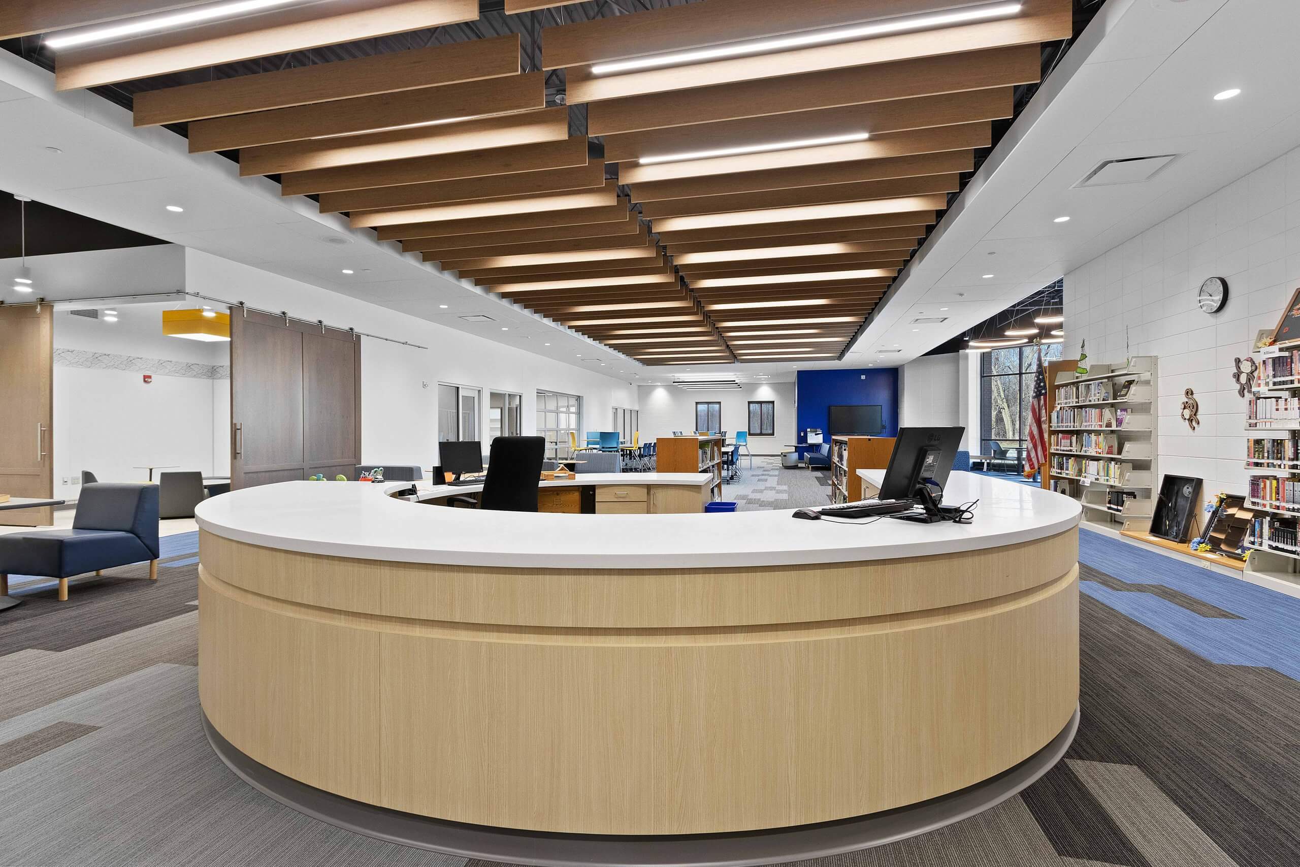 The overall project included a new high school cafeteria, renovation of the high school media center to incorporate a learning and tech lab, and renovation of the computer lab into a STEAM lab. The middle school updated special education classrooms to include sensory rooms, renovated the main office into a learning lab, transformed the computer lab into a STEAM lab, and created collaborative learning spaces. The elementary school added a new wing for classrooms, grades one through four got new furniture, and special education classrooms were updated.