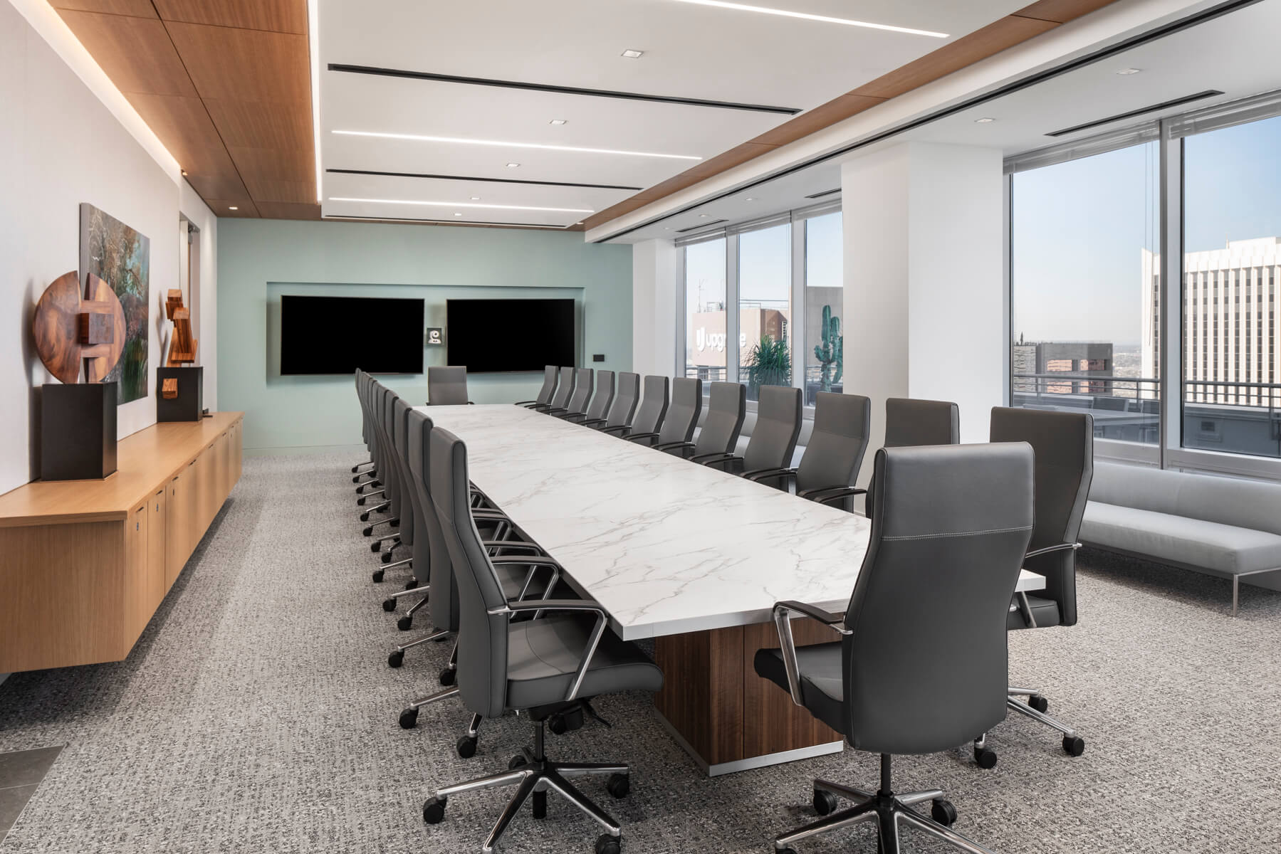 In downsizing from their ten floors and 180,000 square feet of space in the Arizona Center, it was critical to optimize the use of their new real estate, while also maintaining the utmost level of privacy. The Atmosphere and Steelcase team worked on an individual basis with end-users to overcome a number of architectural challenges like columns, angles, and curved walls.