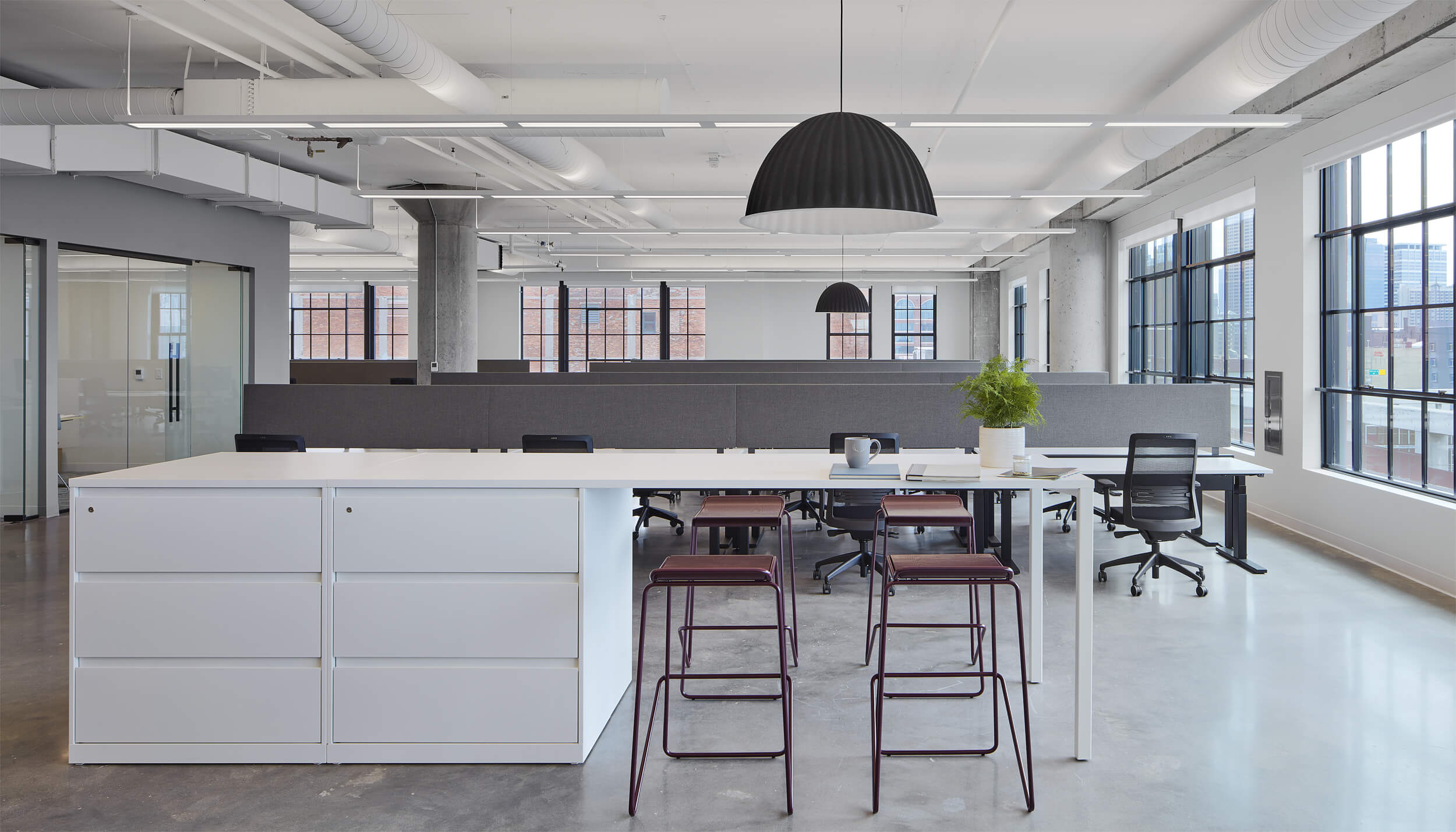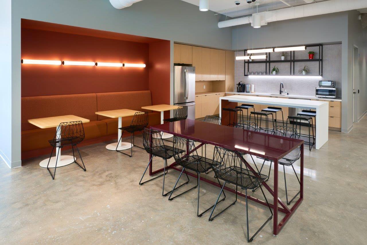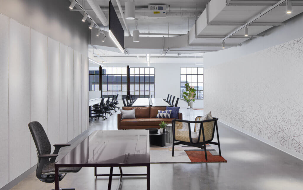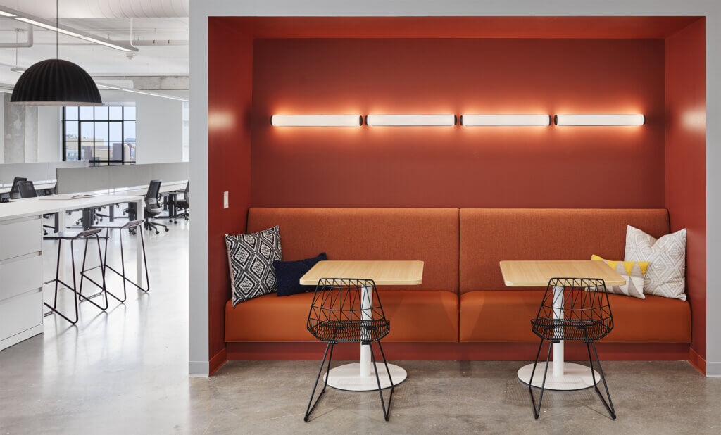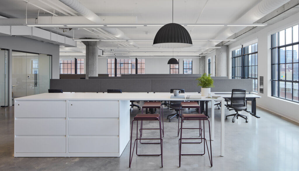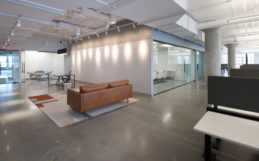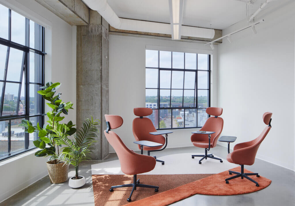 The Nordic is a 200,000 SF mixed-use property recently developed and built by United Properties in Minneapolis’ North Loop neighborhood. United Properties decided to build out and furnish a portion of the (9,163 SF) 8th floor before they secured a tenant – a spec suite. Furnished spec suites are in high demand in the Minneapolis market and lease much faster than vacant spaces. Cushman & Wakefield was hired to do the leasing for The Nordic, and we worked closely with them to meet their financial goals for furniture costs. We partnered with Studio BV and developed options that met these goals in order to entice tenants to this beautiful space.