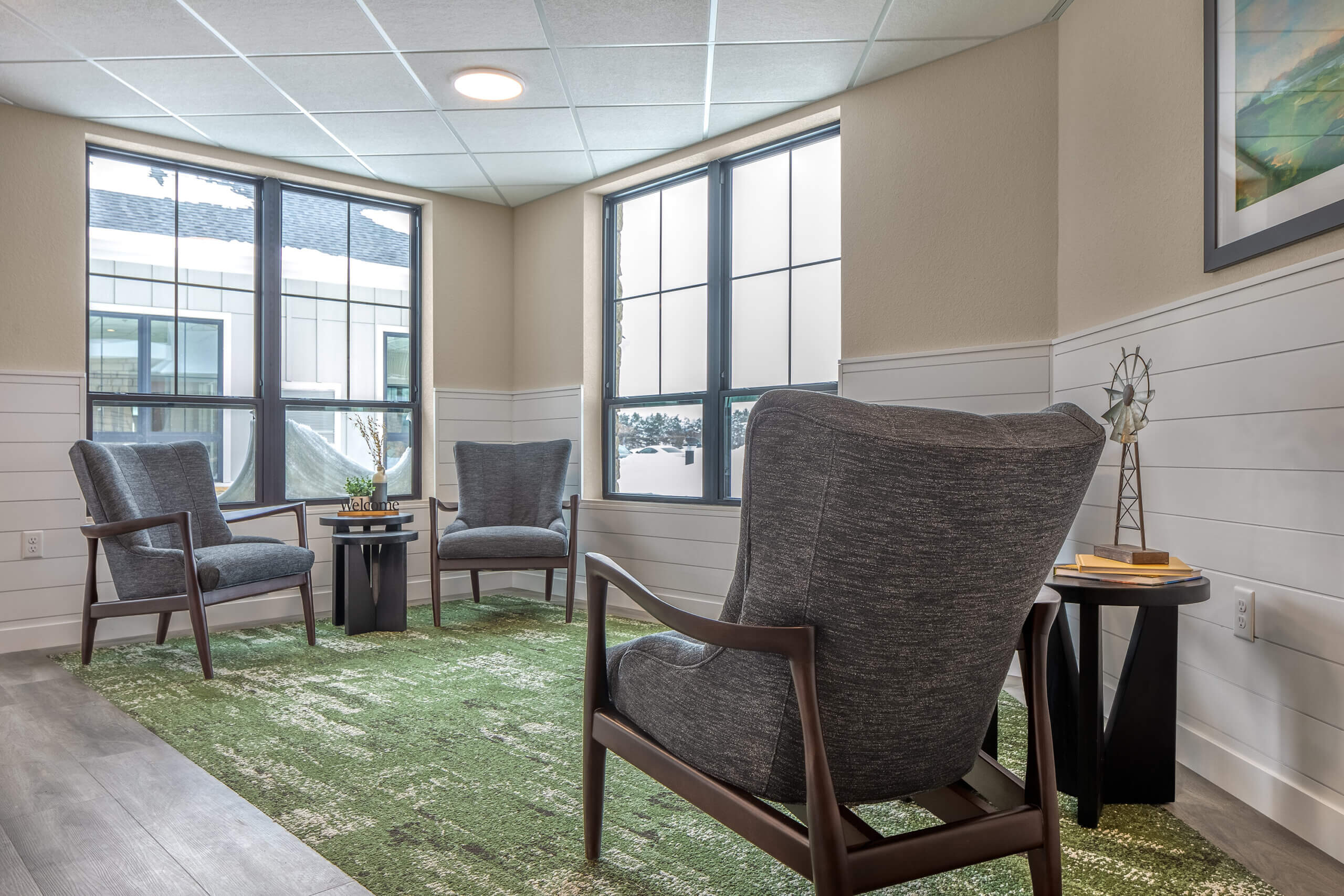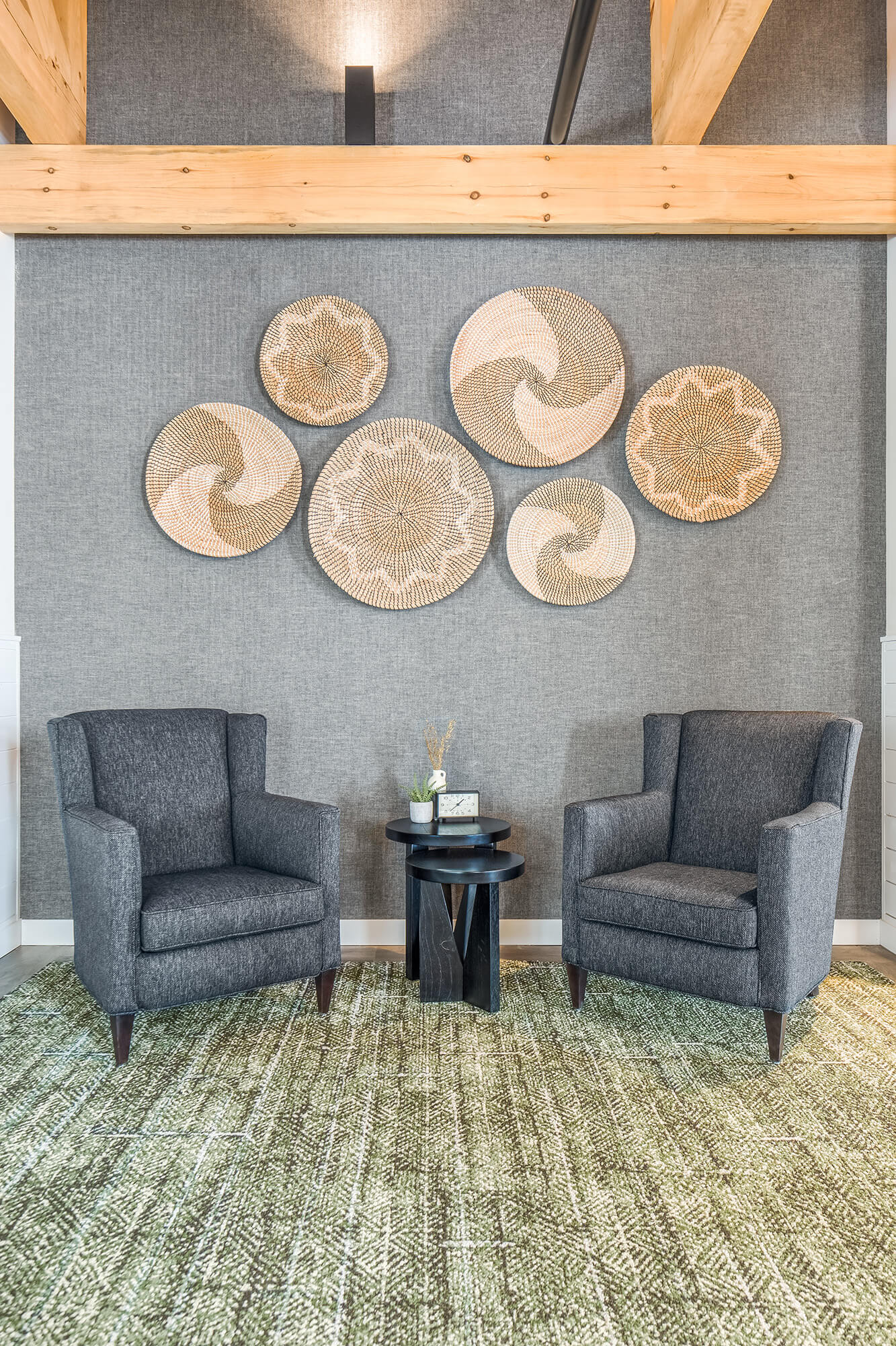 Through coordinated, consistent communication between The Woodspire team, Atmosphere, vendors, and installers, we were able to learn the clients’ preferences and become a trusted partner. In addition to providing furniture and finish selections, vendor coordination, and delivery and installation, Atmosphere was able to add value by accessorizing the common spaces as well, showcasing the talents and strengths of our entire Eau Claire team.