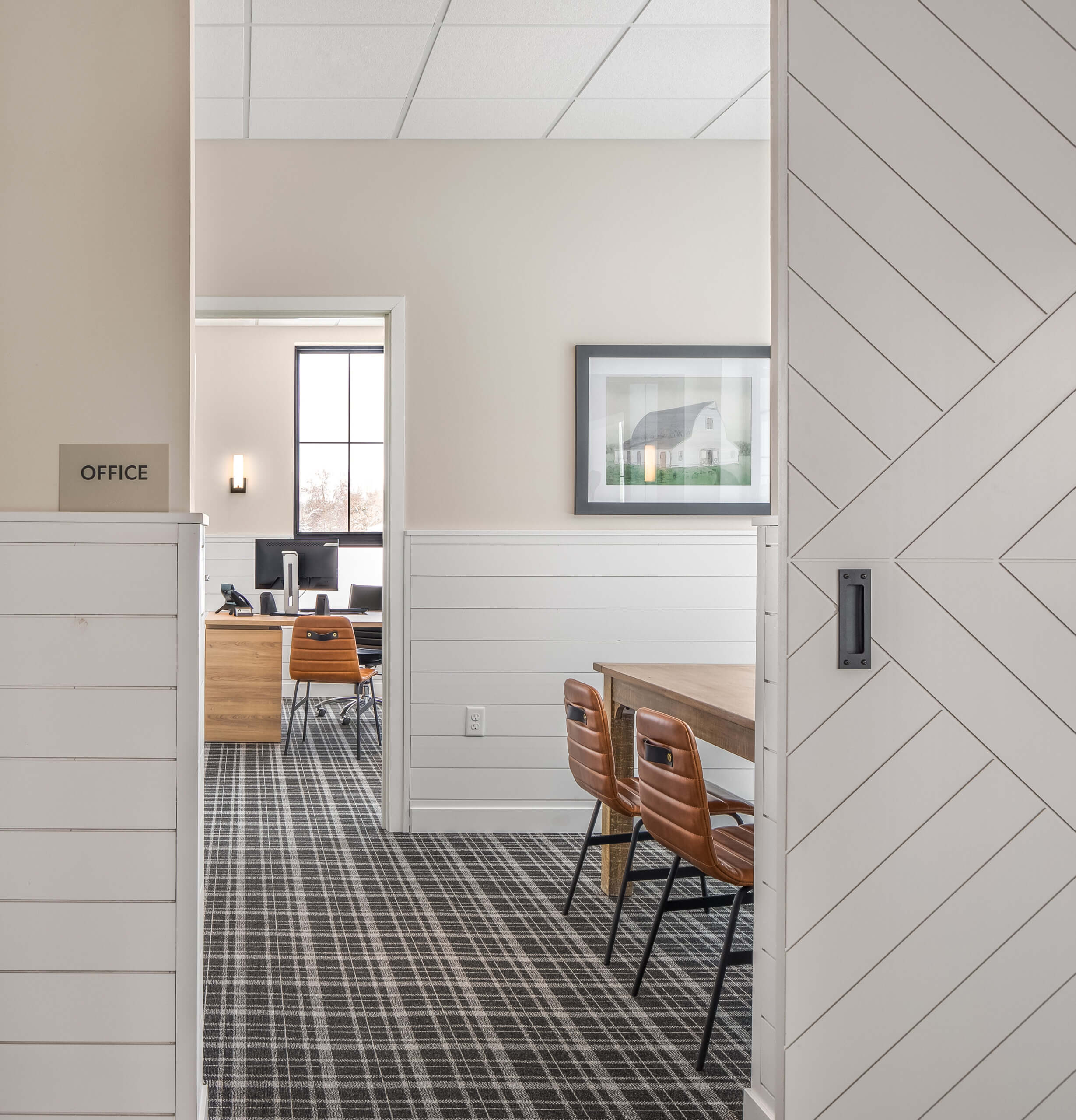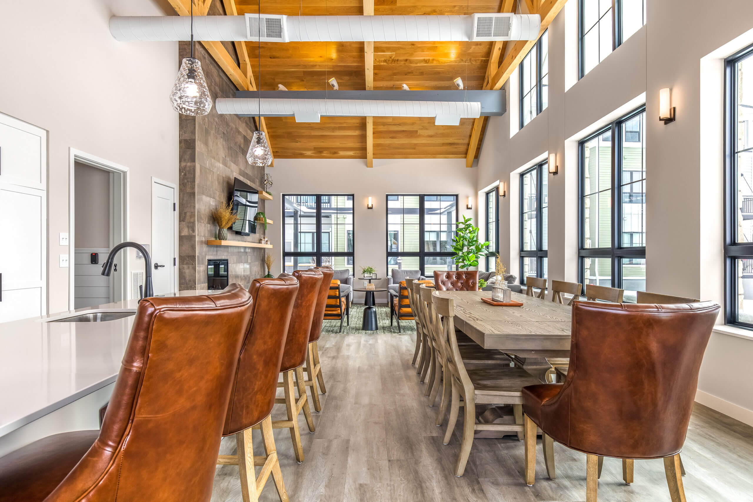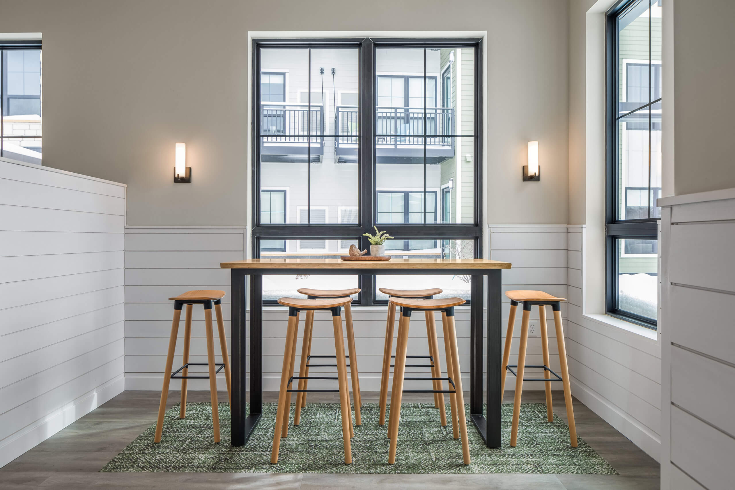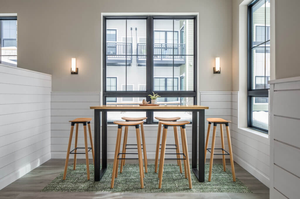 The owners of The Woodspire reached out to Atmosphere in January 2022 for assistance with furniture and art for the common areas throughout the facility – including the lobby, office and conference spaces, community rooms, Sky Lounge, and outdoor spaces. With the building fully under construction at the time, we drew inspiration from Collage Architects’ building finishes and interiors ideas to carry out their modern farmhouse vision.