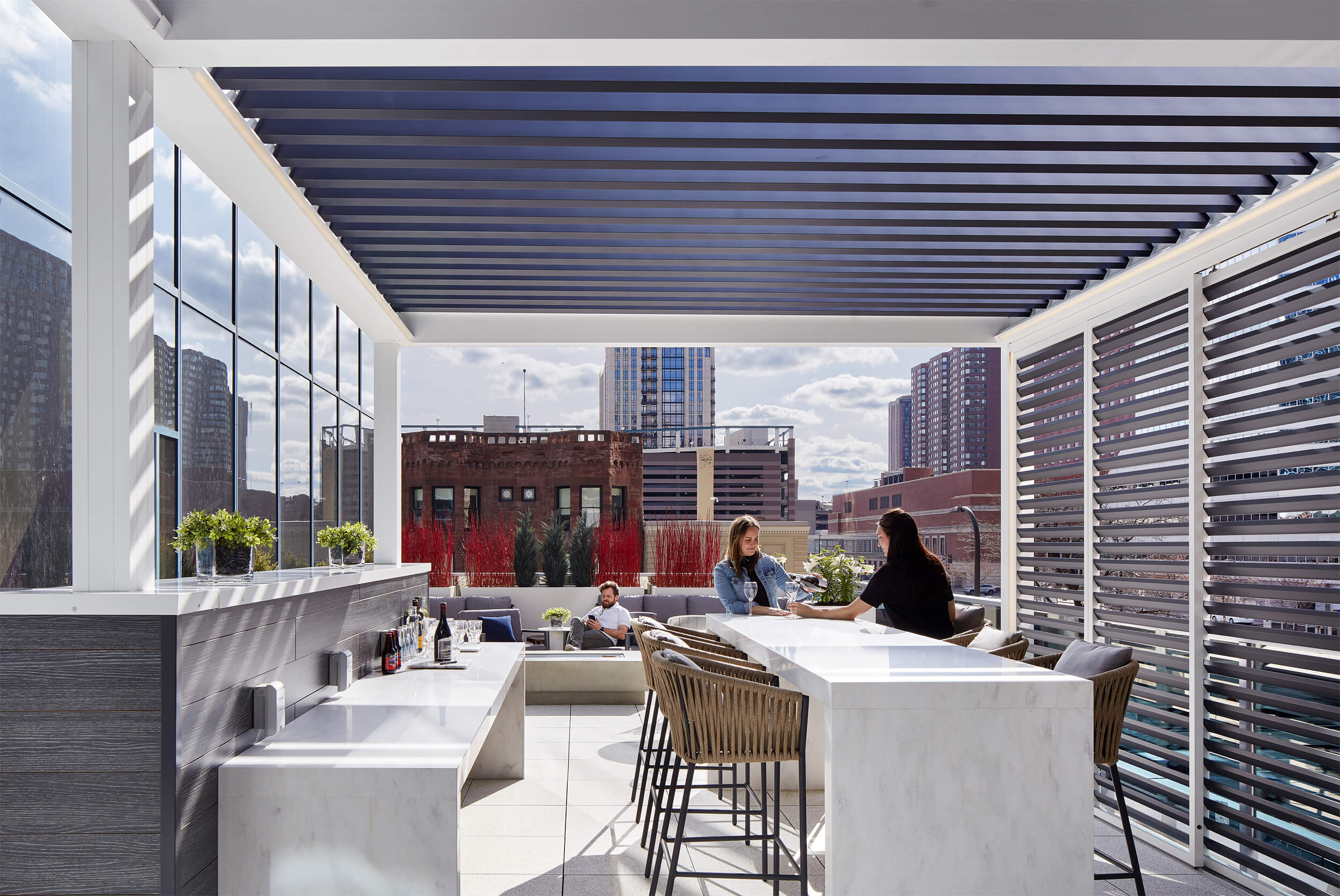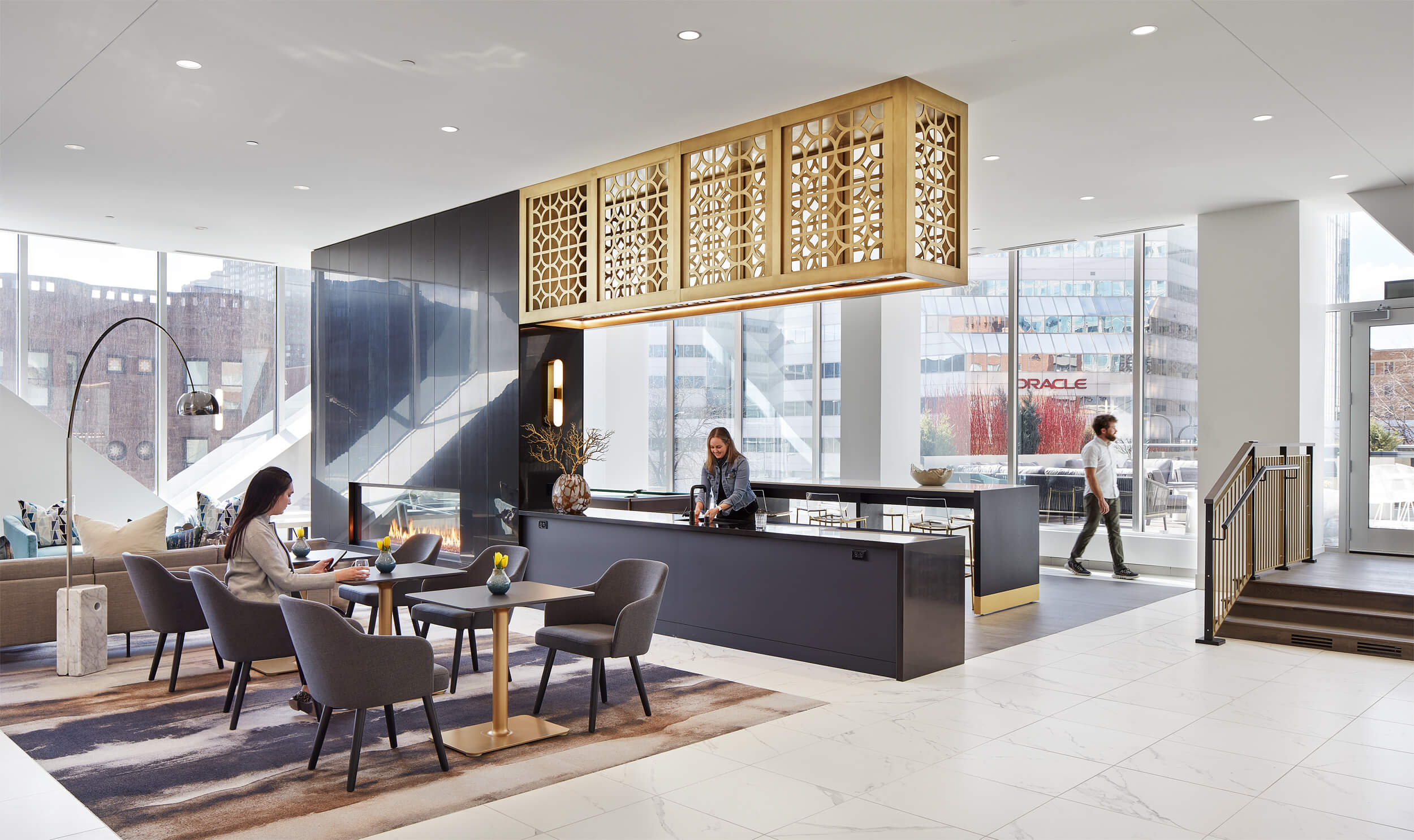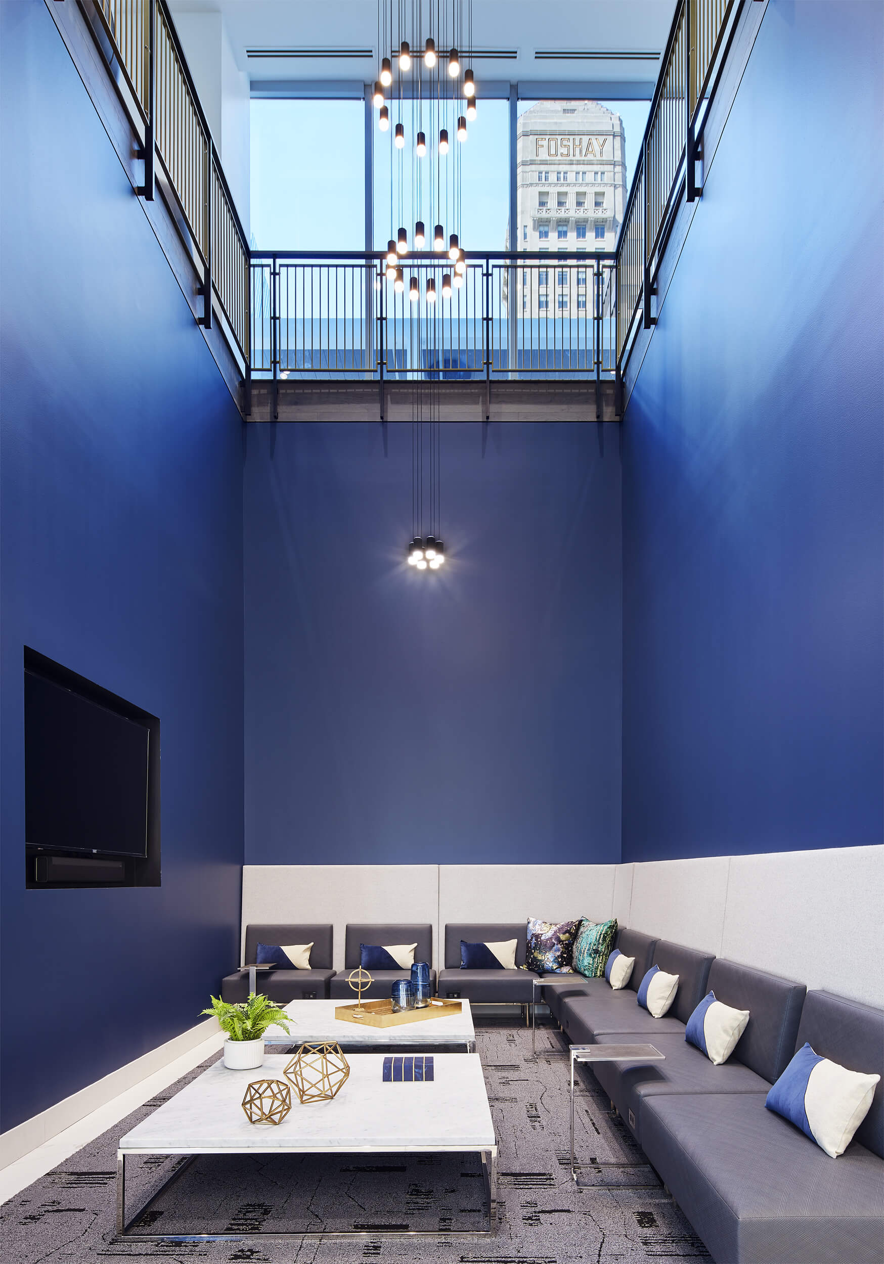 Centrally located in downtown Minneapolis, MN, Two22 is a distinct landmark building with beautiful, well equipped interior spaces furnished by Atmosphere.