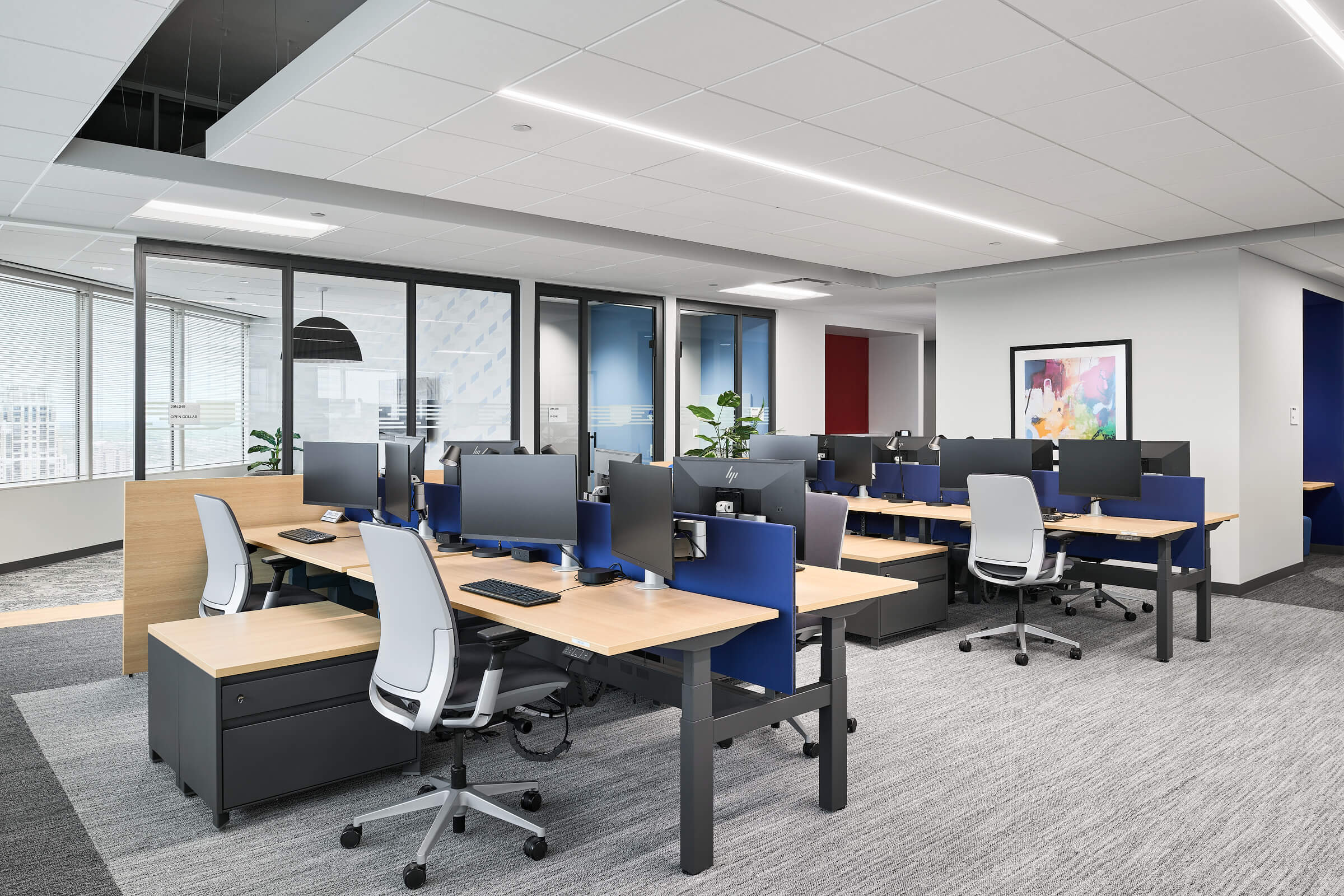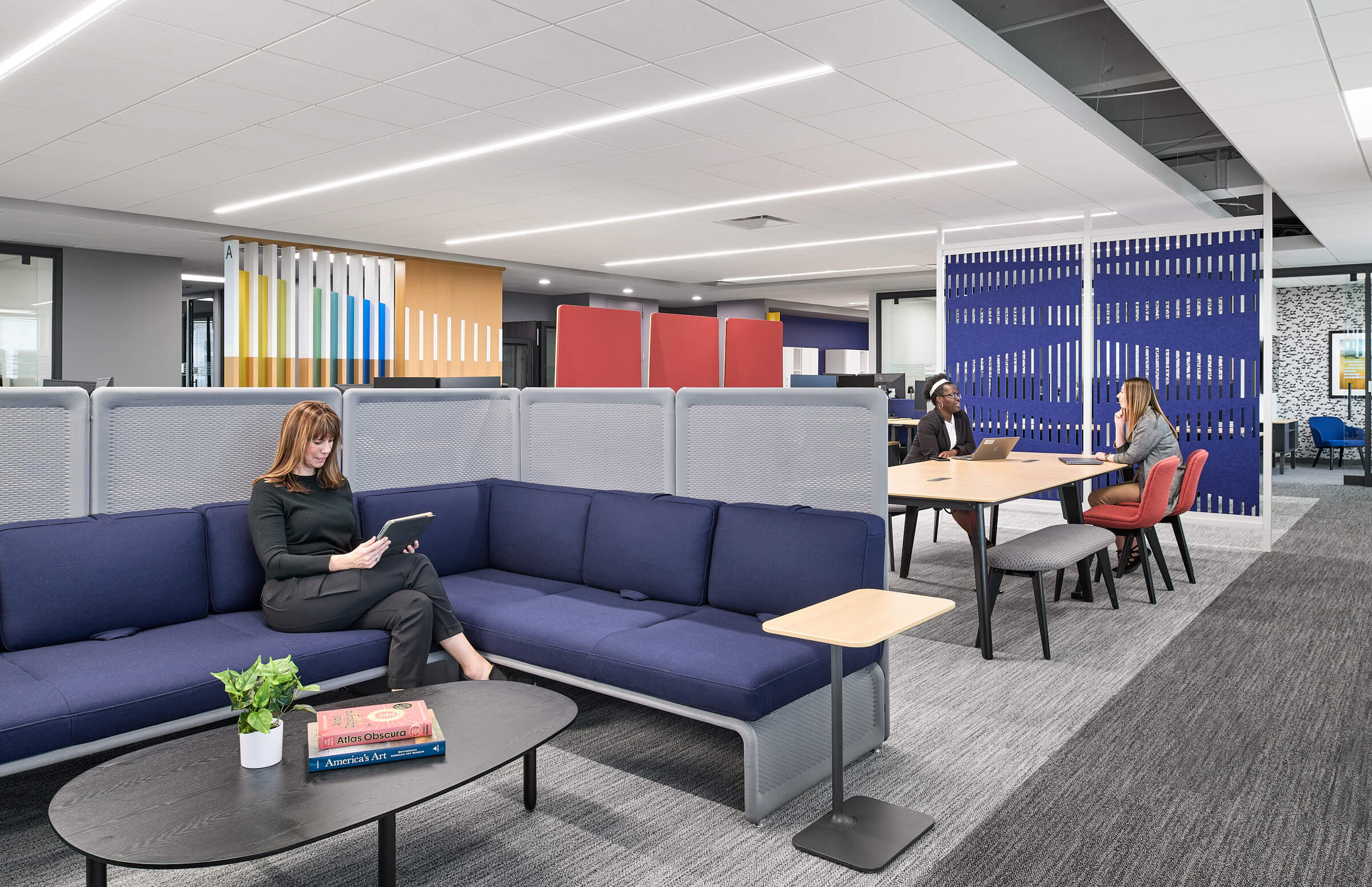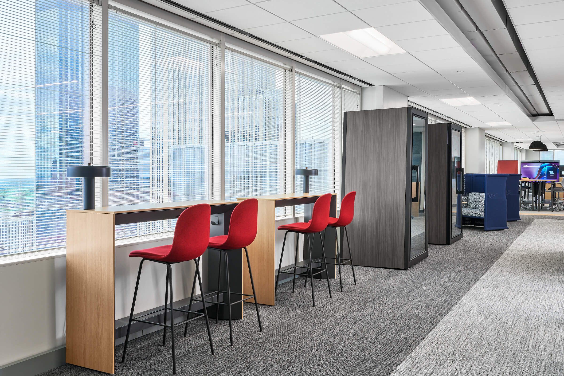 U.S. Bank is a people-first company focused on creating a workplace that values employee input, challenging new ideas, and a diverse workforce. Atmosphere worked closely with U.S. Bank to realize those values. Collaborating with RSP Architects and corporate real estate from US Bank, Atmosphere furnished 56,000 square feet of hybrid workspace across two floors. Atmosphere’s updates reinforced corporate brand and company culture, boosting employee satisfaction and maximizing productivity.