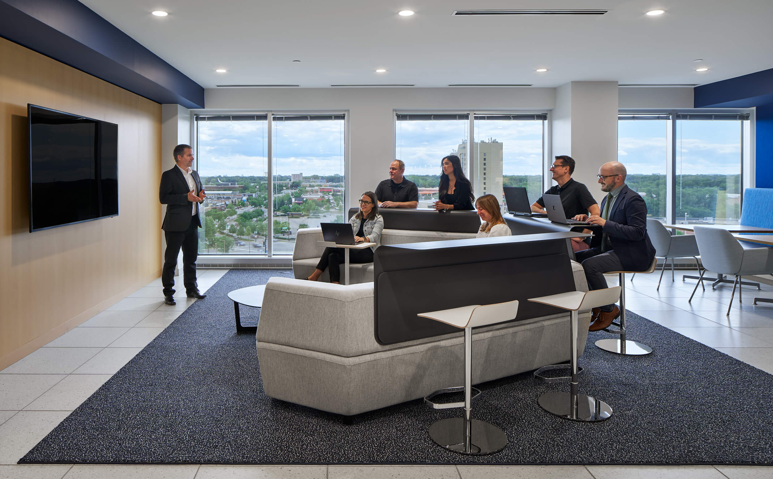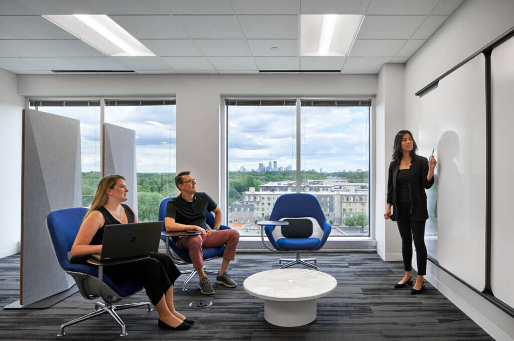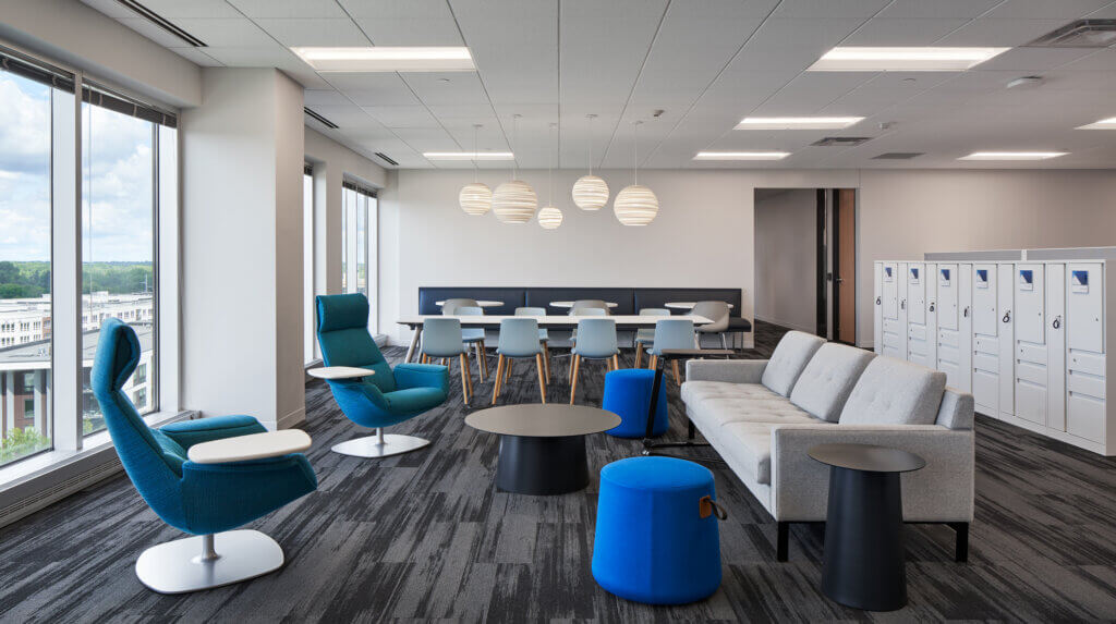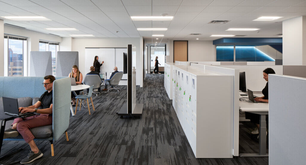 Atmosphere partnered with Studio BV on this Golden Valley workplace, supporting a range of work styles with inviting, creative spaces.